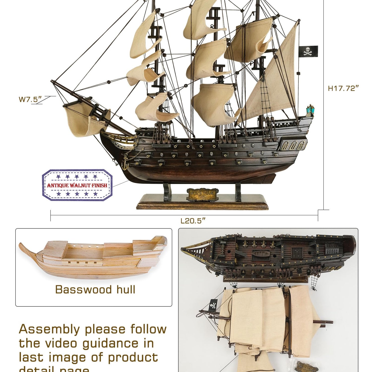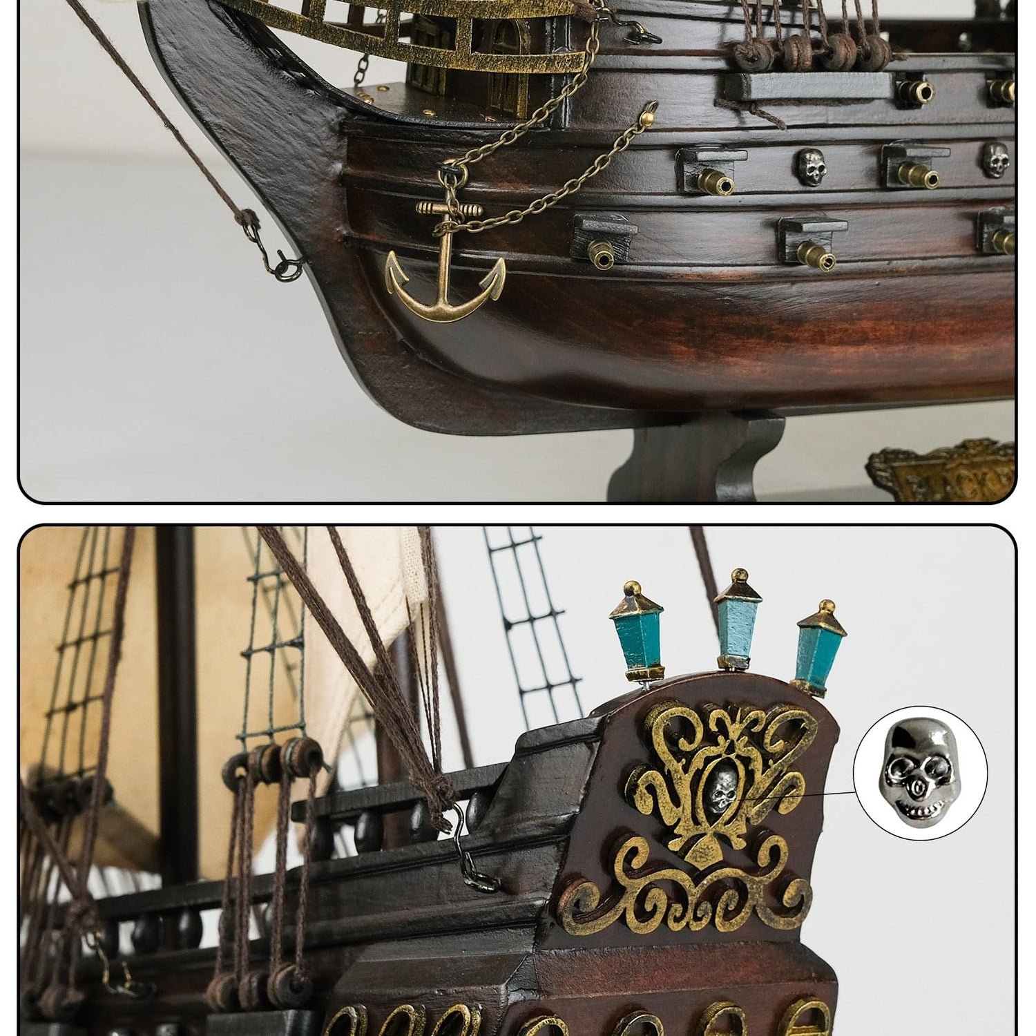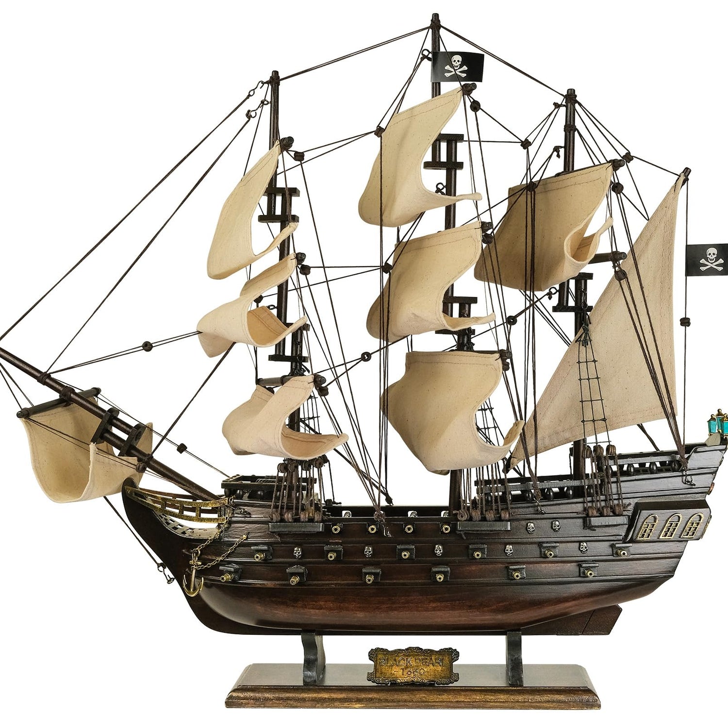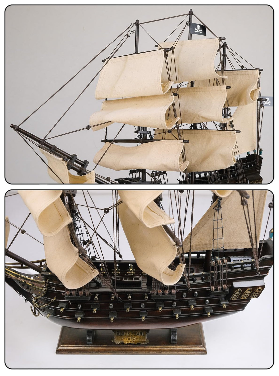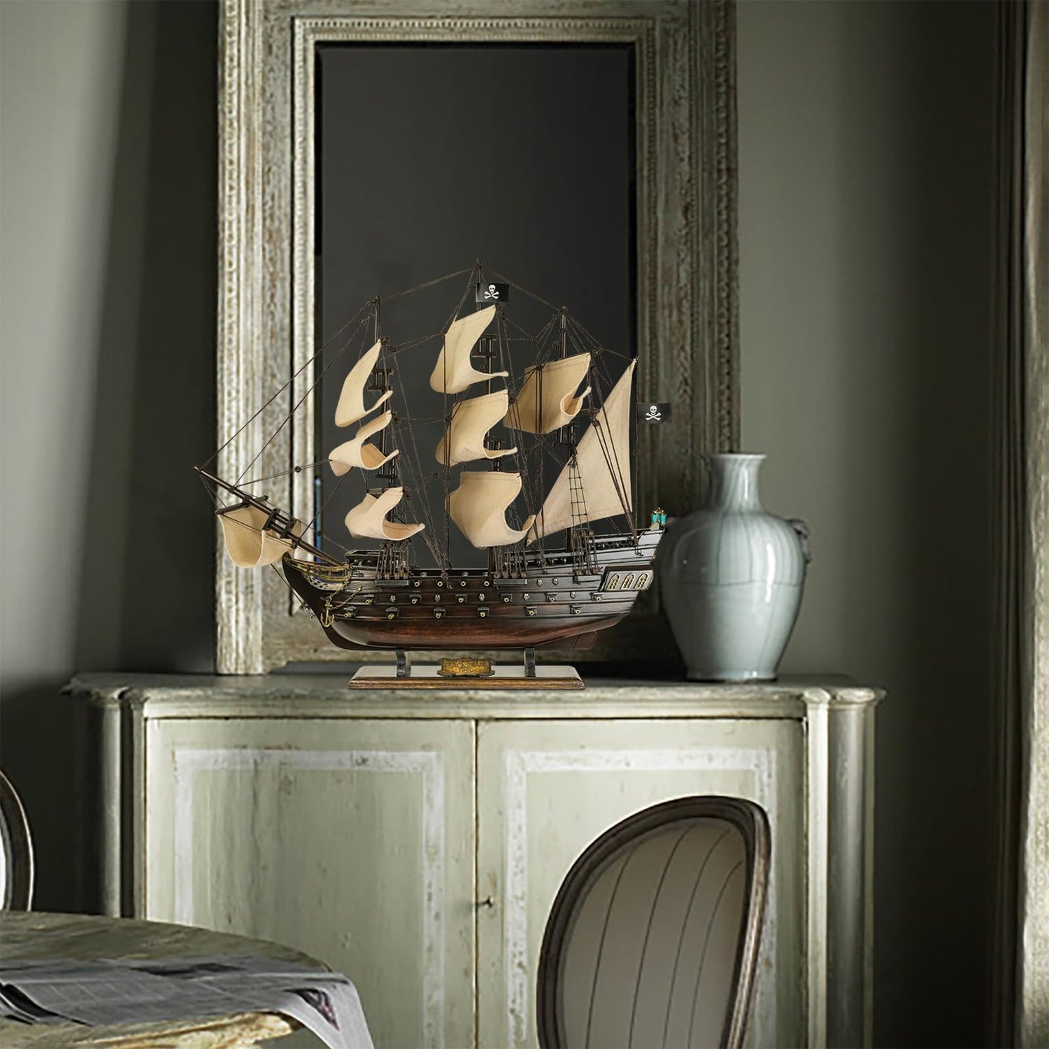 SAILINGSTORY Wooden Pirate Ship Model Black Pearl Sailing Ship Sailboat Decor 20.5" Beige Sails