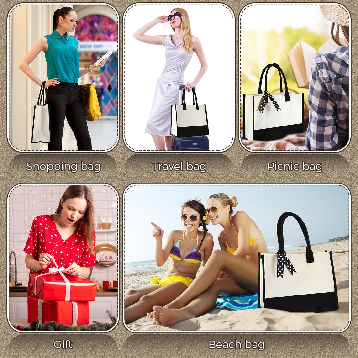 - Classic Retro Design: the tote bag for women adopts the classic combination of white and black, in a simple and modern style; The bottom and sides of the tote shopping bag are widened design, which makes it more stable and not easy to deform; The black canvas bag is made of waterproof lining, protecting your items while playing at the beach; The sturdy black handle of the bag is comfortable to hold and not easy to break, making it suitable for long distance travel