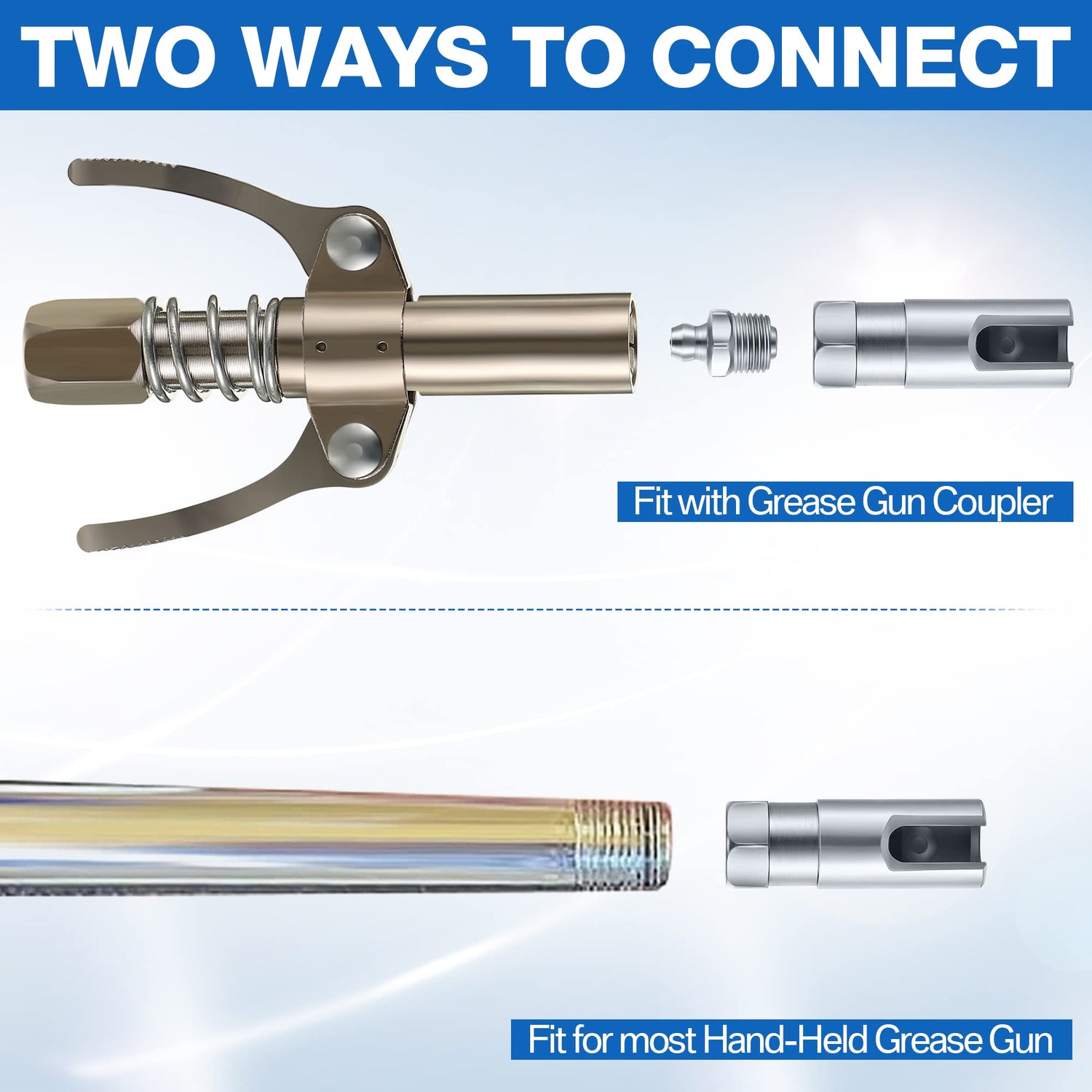 - Compatibility: this grease gun coupler fits most standard 1/8 inch NPT grease hoses and are compatible with standard handheld grease gun couplers