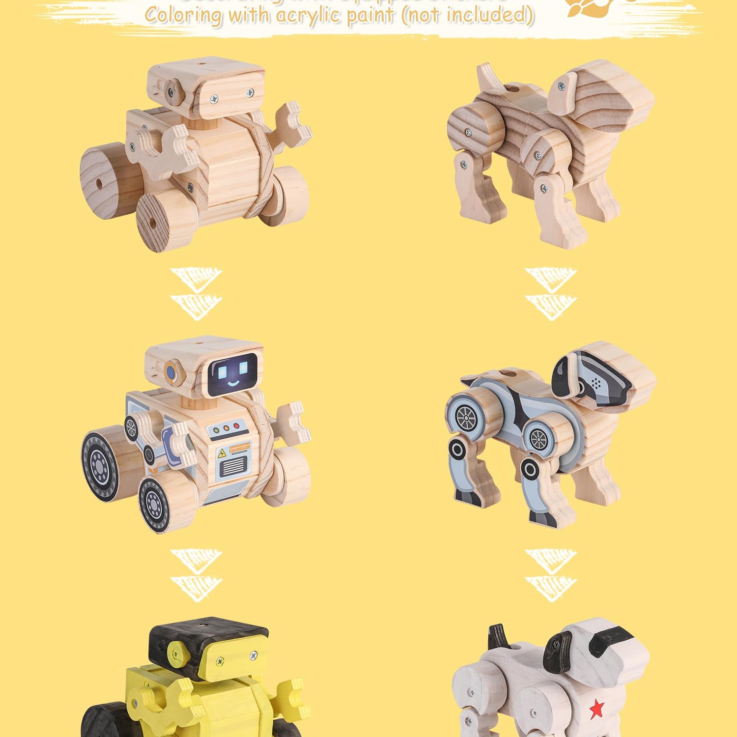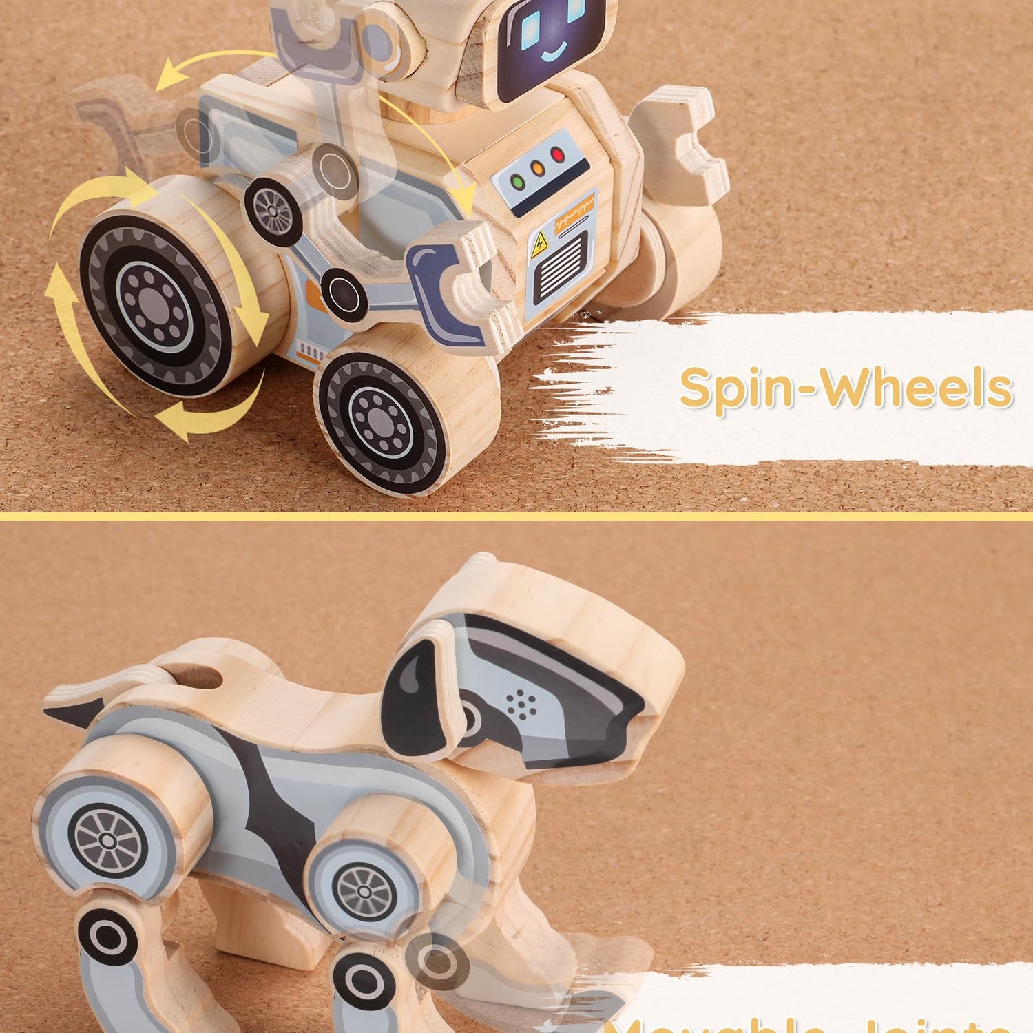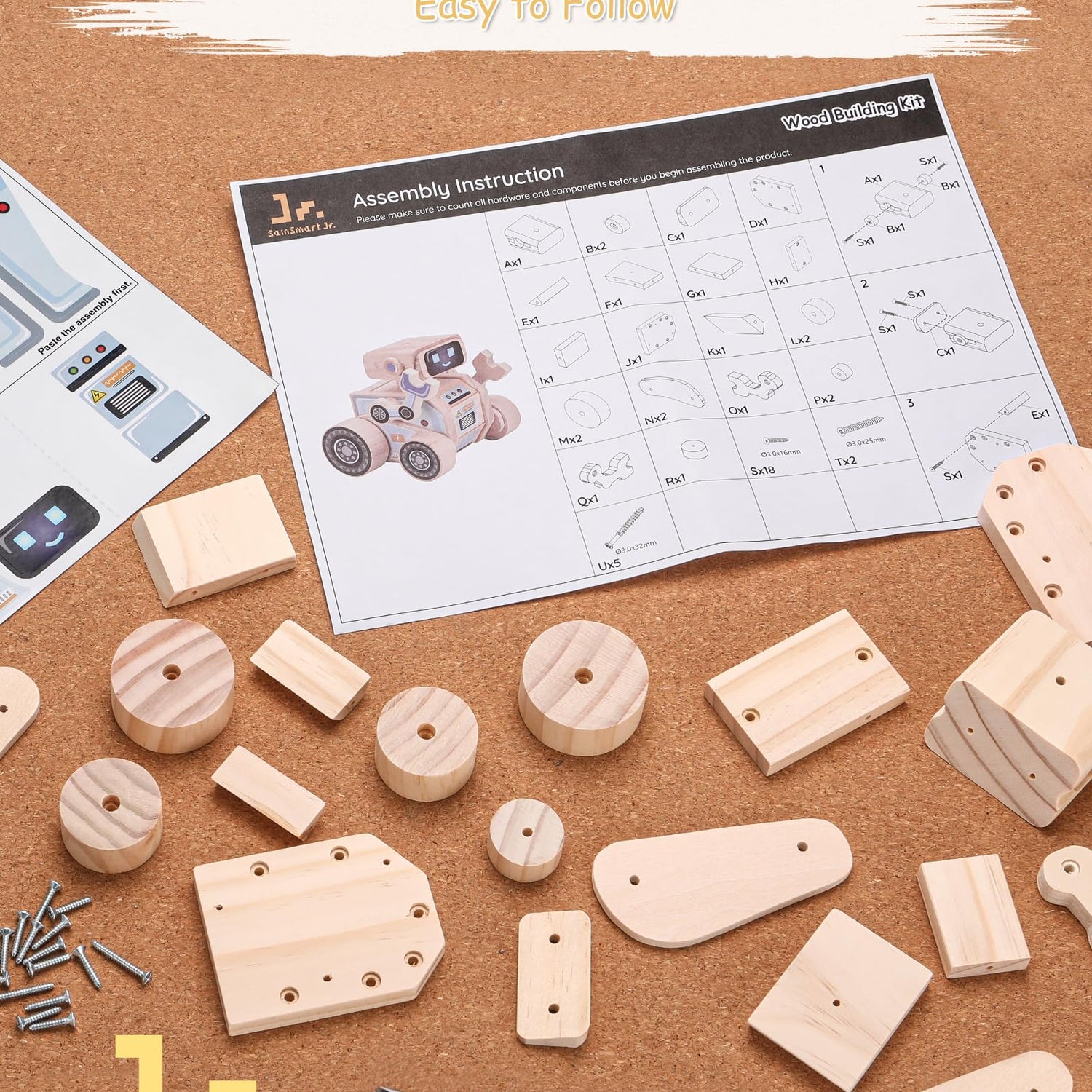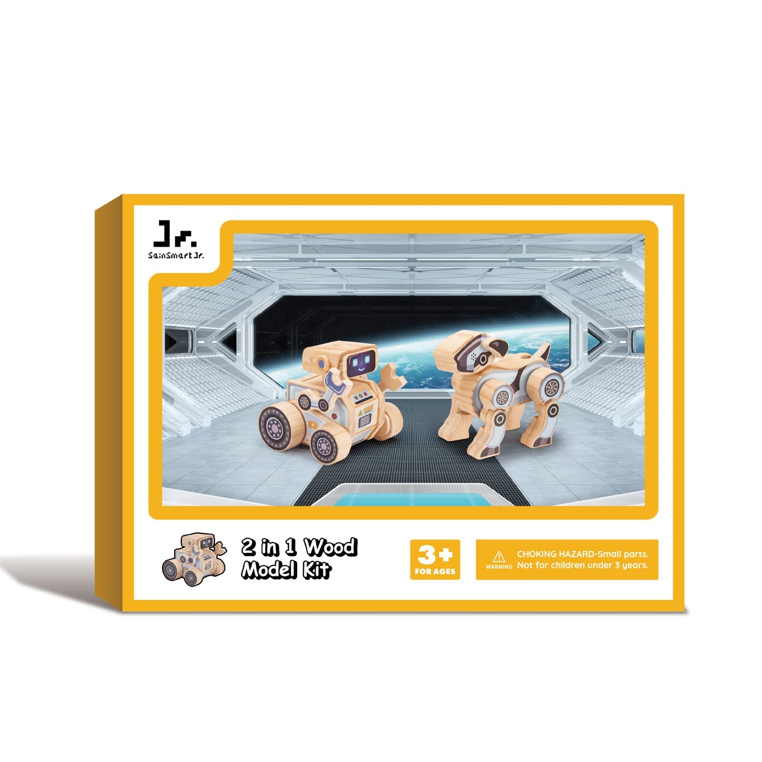 SainSmart Jr. 2-in-1 STEM Kits, Wooden Robot Assembly Toy Set, Woodworking Crafts Projects for Kids, Gift for Boys and Girls