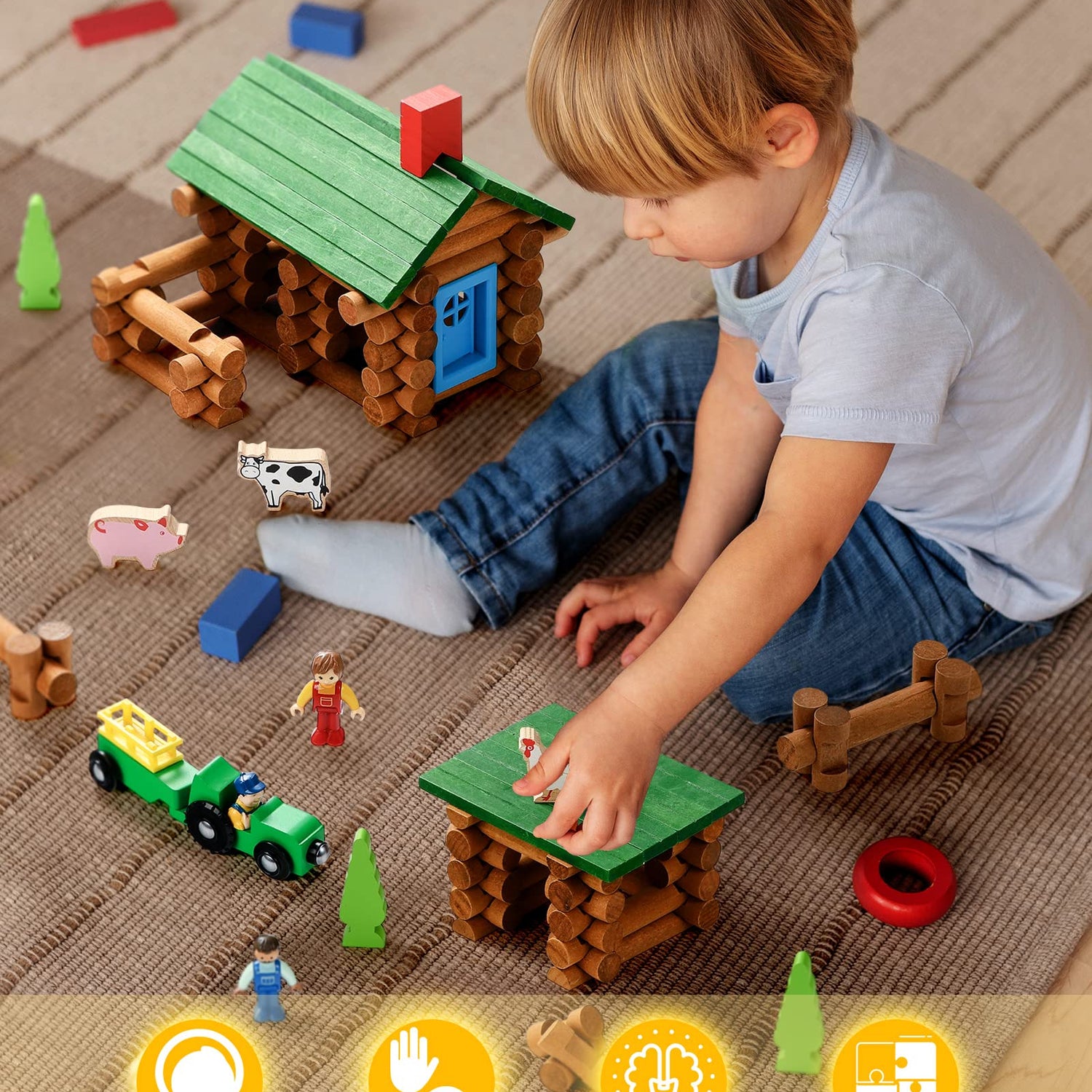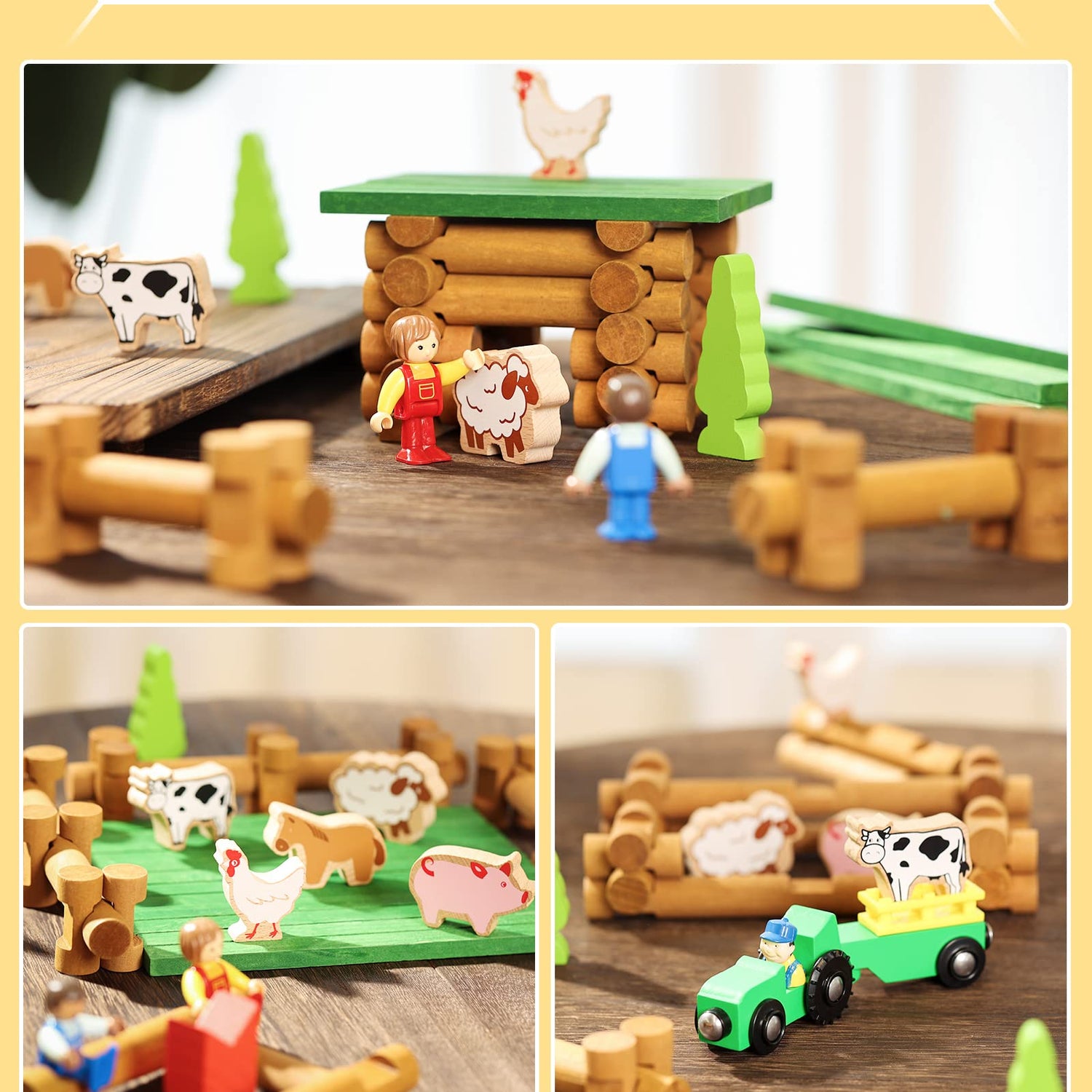 - RELIABLE MATERIAL - The logs farm cabin set is made of birch wood, which is sturdy and firm. Fully tested to the highest U. S. Astm toy safety standards.
