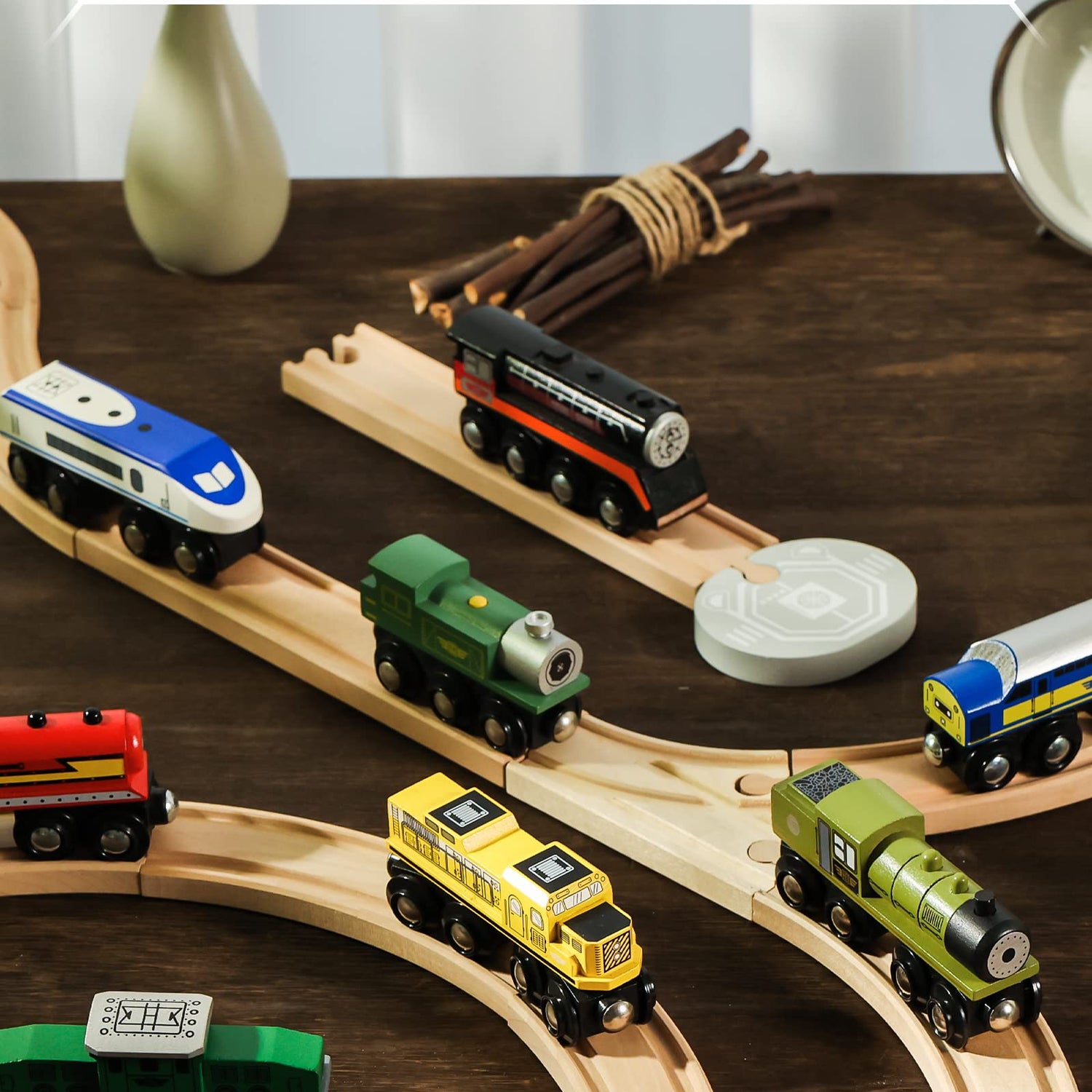 SainSmart Jr. Wooden Train Set Accessories, Magnetic Toy Car Set (10 PCS), Compatible with All Major Brands, Gift for Toddlers, Boys, and Girls Aged 3+