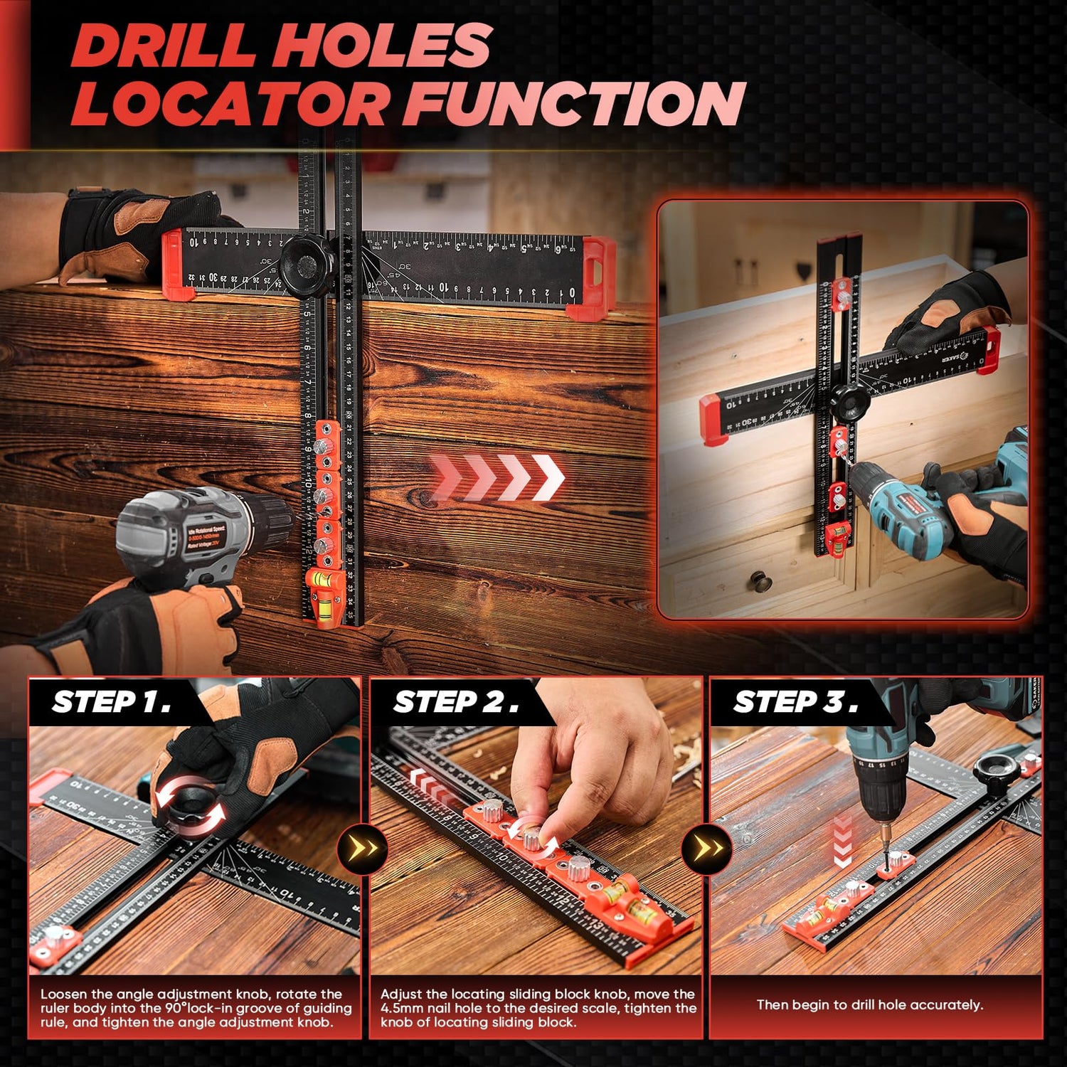 - 【RELIABLE MATERIAL】Crafted from premium aluminum alloy,Saker 4-in-1 drilling positioning ruler guarantees durability and resilience. The wear-resistant printing ensures longevity, safeguarding against fading and preserving precise measurements throughout extended use.