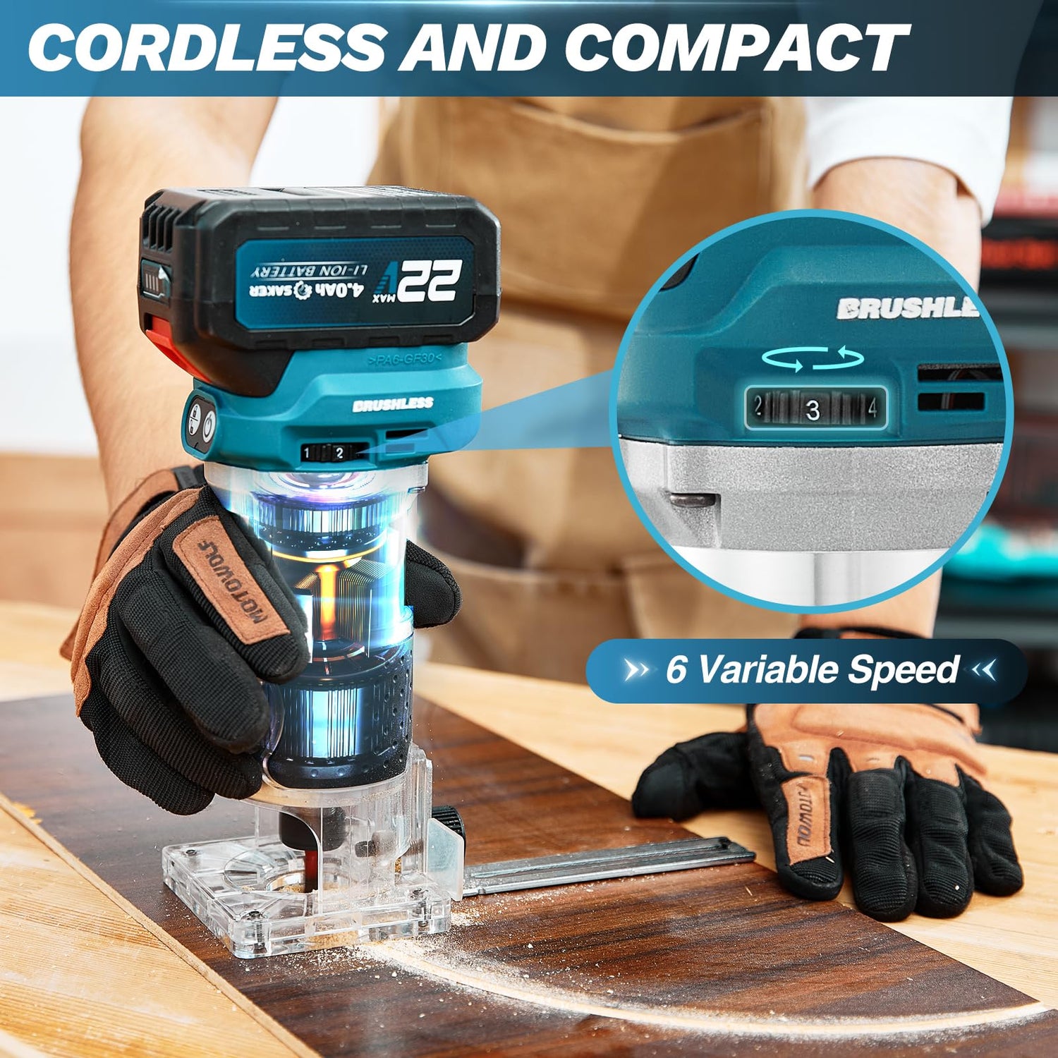 Saker Router Tool Cordless,Compact Router Tool,Wood Router for Woodworking,Lithium-Ion Brushless Motor for Edge Trimming with Adjustable Speed for DIY Projects