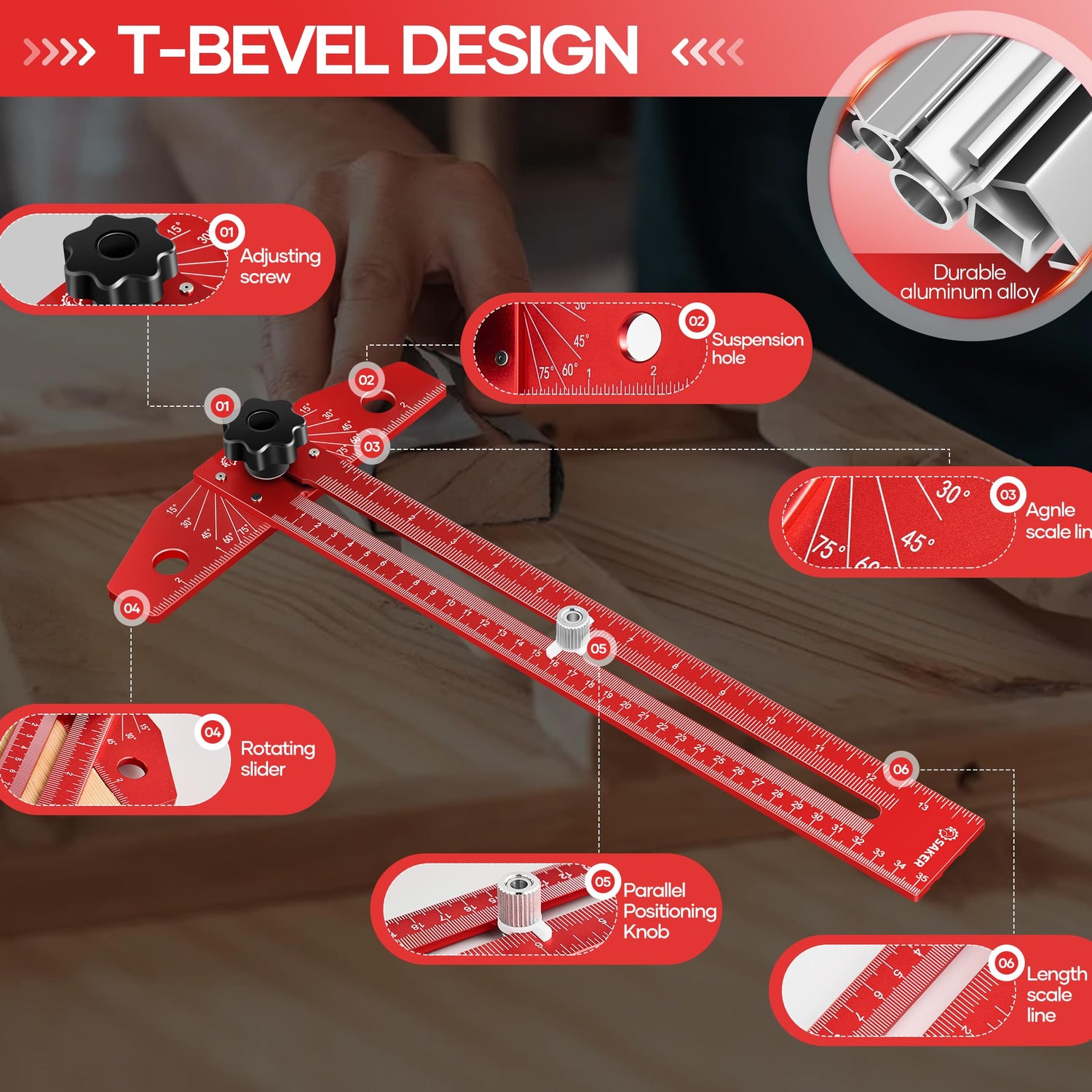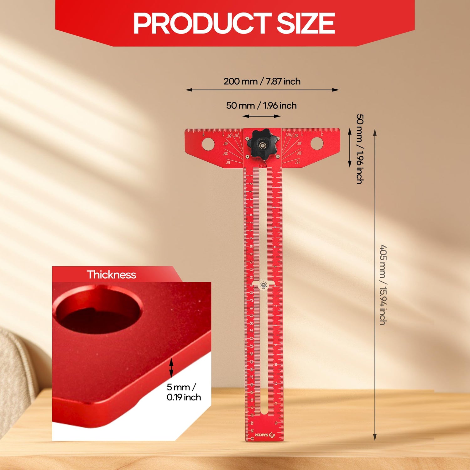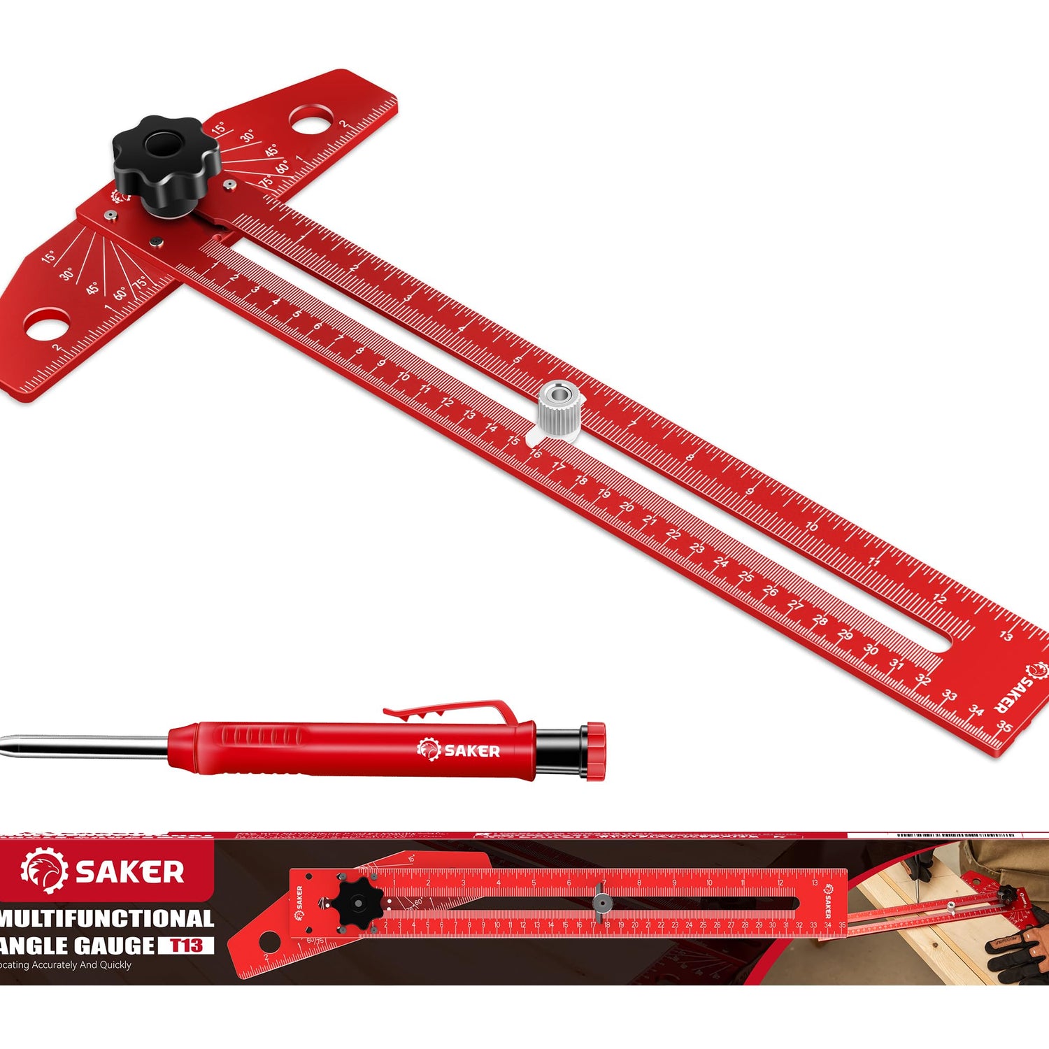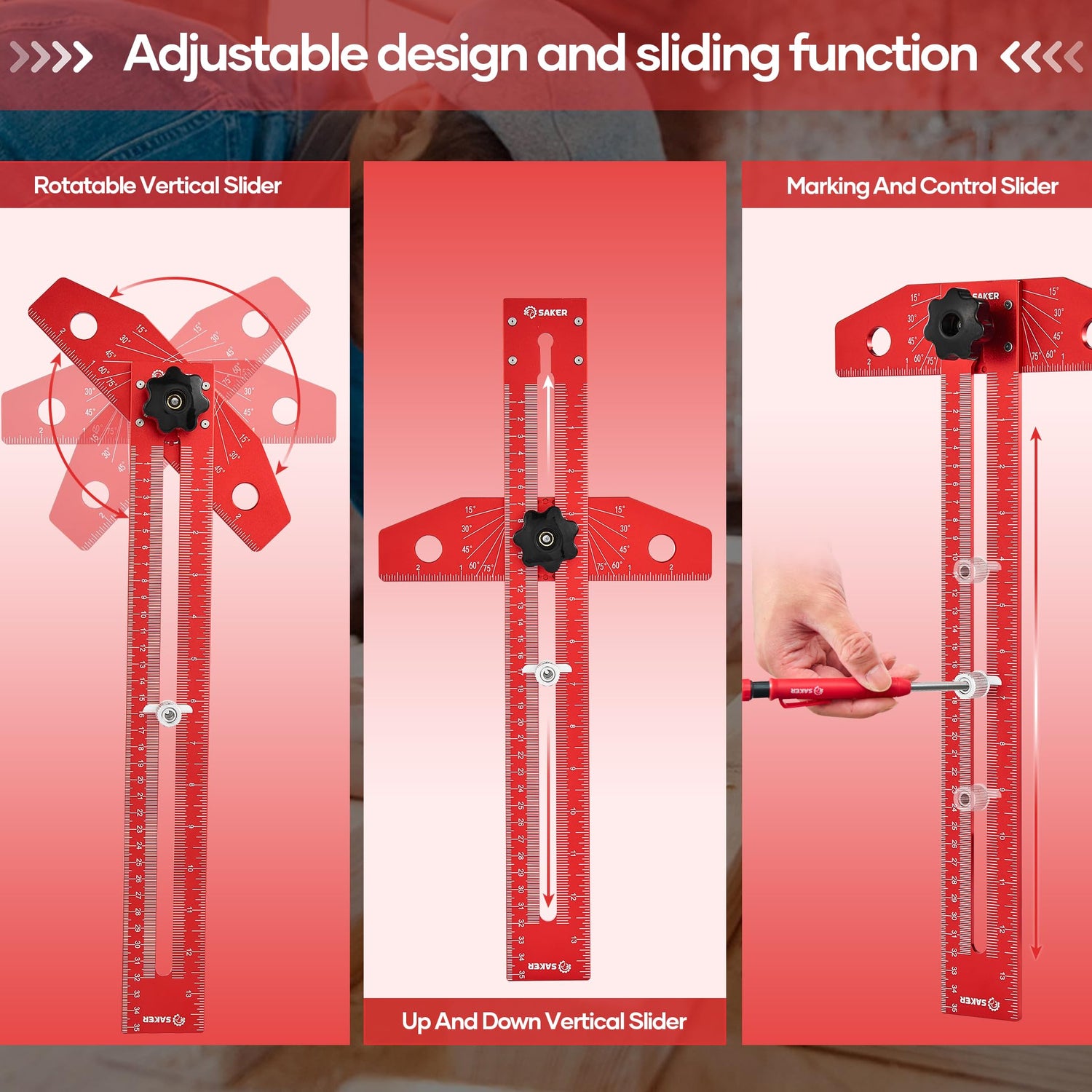 Saker Woodworking Scriber Marking Line Ruler, Adjustable Aluminum Alloy Sliding T-Square Ruler,Precision Line Drawing aid Ruler with Angle Adjustment Scale