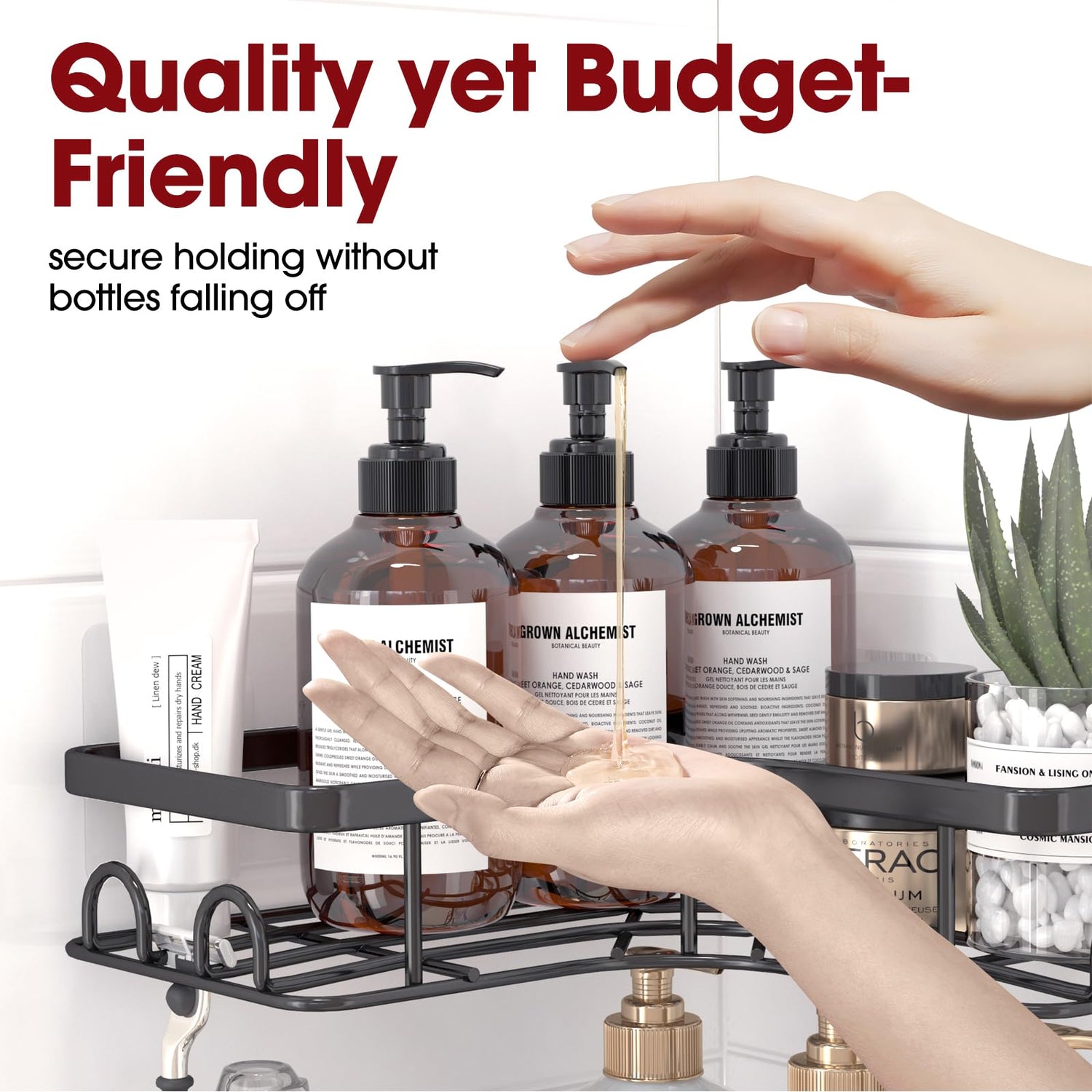 - STURDY & STABLE: Each shower caddy for corners is equipped with 2 ultra-powerful adhesive tapes capable of supporting up to 20lb, which ensures your corner shower caddy stays firmly in place, even when handling the shampoo. The Sakugi shower caddy for hanging provides a secure and stable storage solution for your shower necessities.