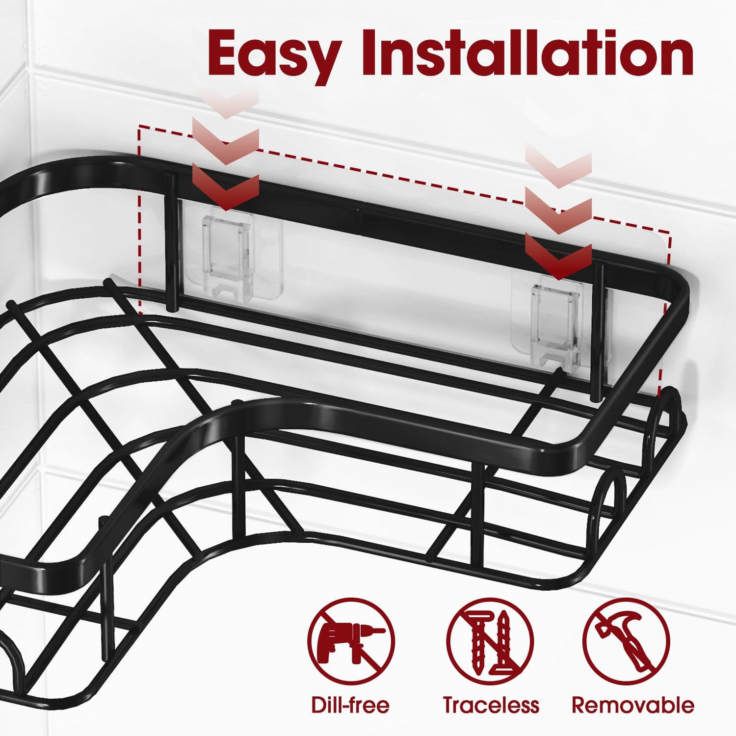 - MAXIMIZE CORNER SPACE: This Sakugi innovative round-corner shower shelf for inside shower optimizes unused corner space, transforming it into practical storage areas. Say goodbye to wasted space and expensive renovations! Sakugi space-efficient black bathroom accessories are a simple and budget-friendly choice to meet your increasing storage needs.