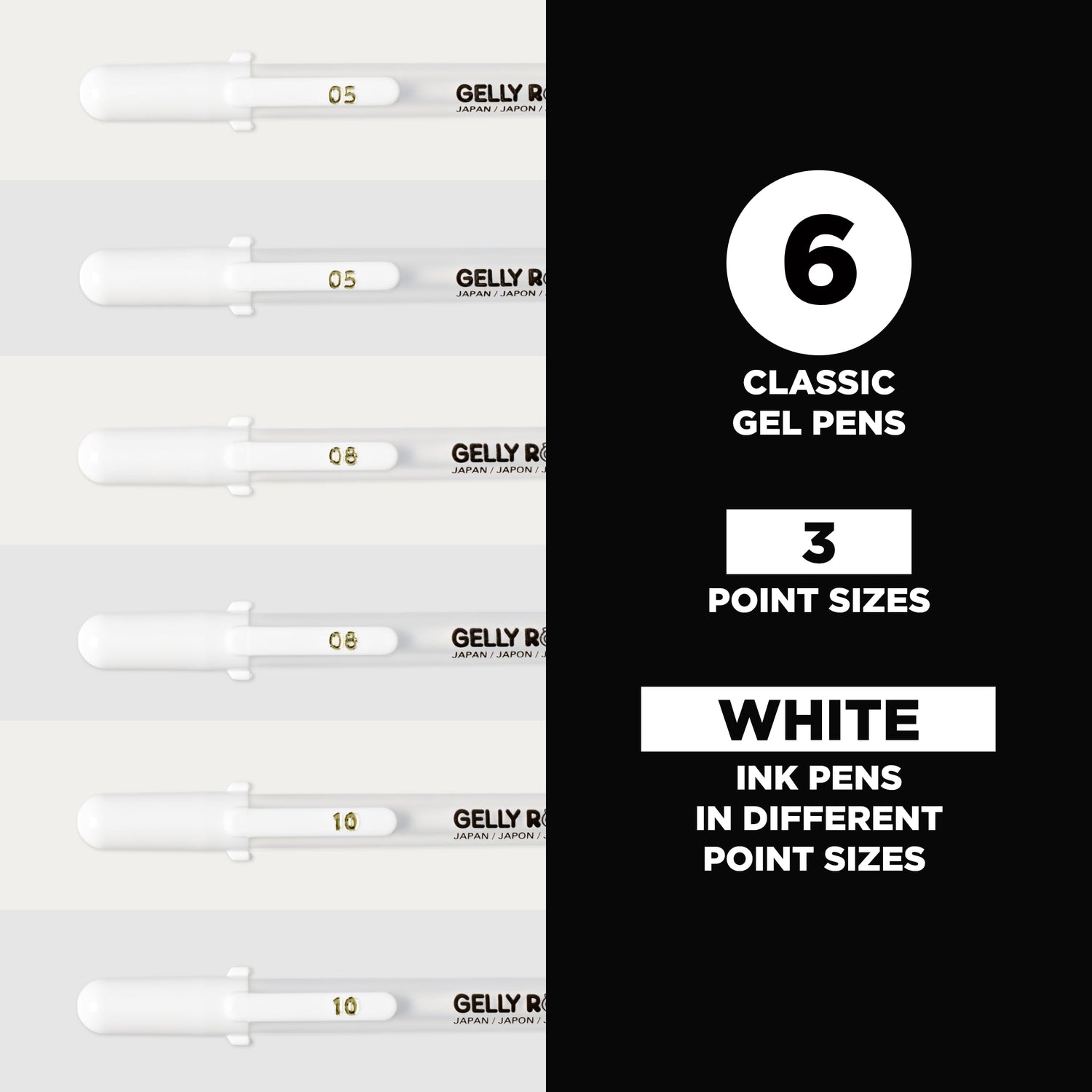 SAKURA Gelly Roll Gel Pens - Fine, Medium & Bold Tip Ink Pens for Journaling, Art, or Drawing - For Art Gifts, Holiday Gifts & DIY Projects - Classic White Ink - 05/08/10 Assorted Tip Sizes - 6 Pack