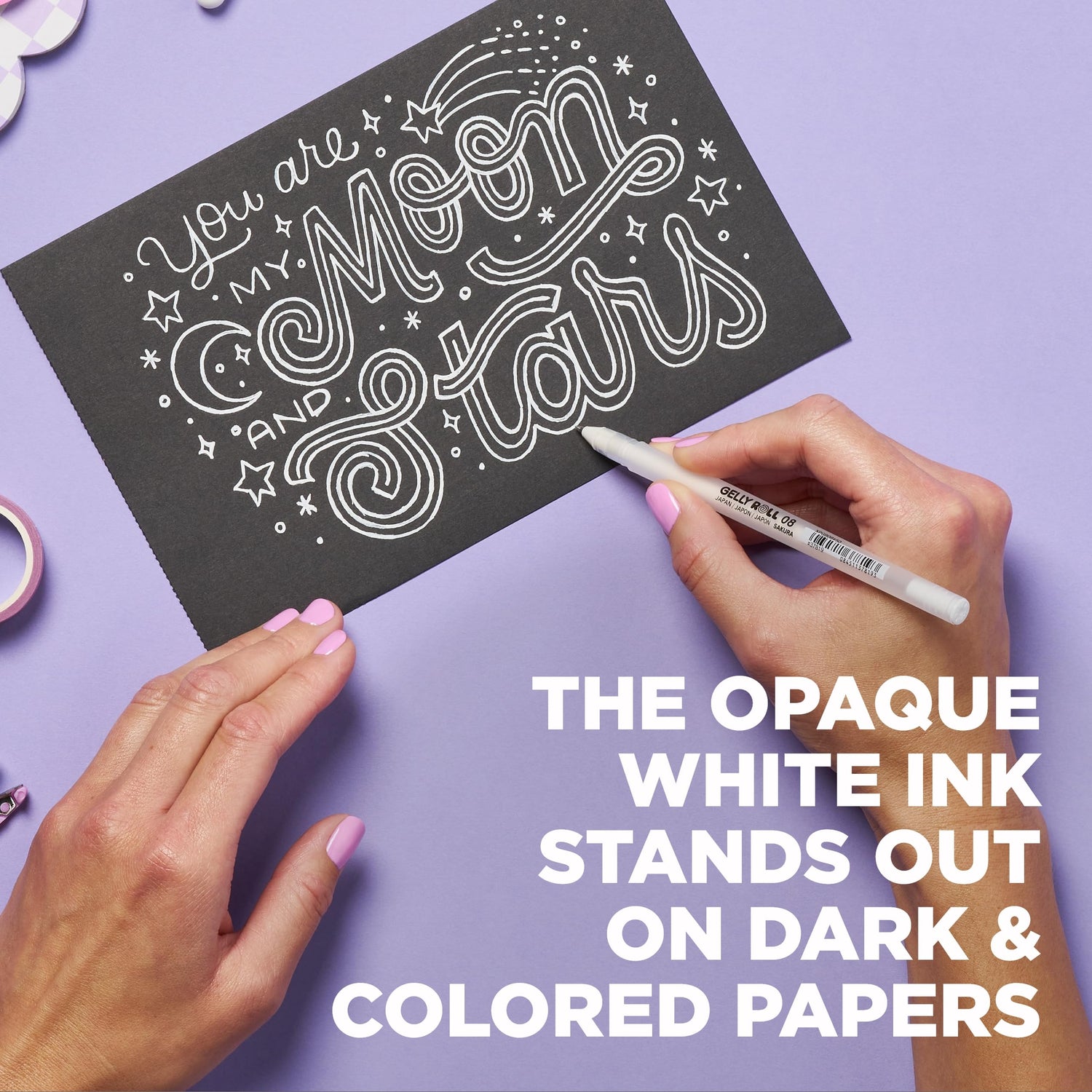 - Varied Line Sizes: Gelly Roll comes in three sizes—10 Bold for a solid bold line; 08 medium for a medium bright line; and 05 fine for a finer, lighter white line