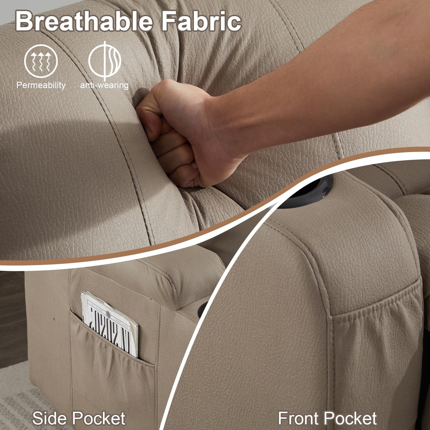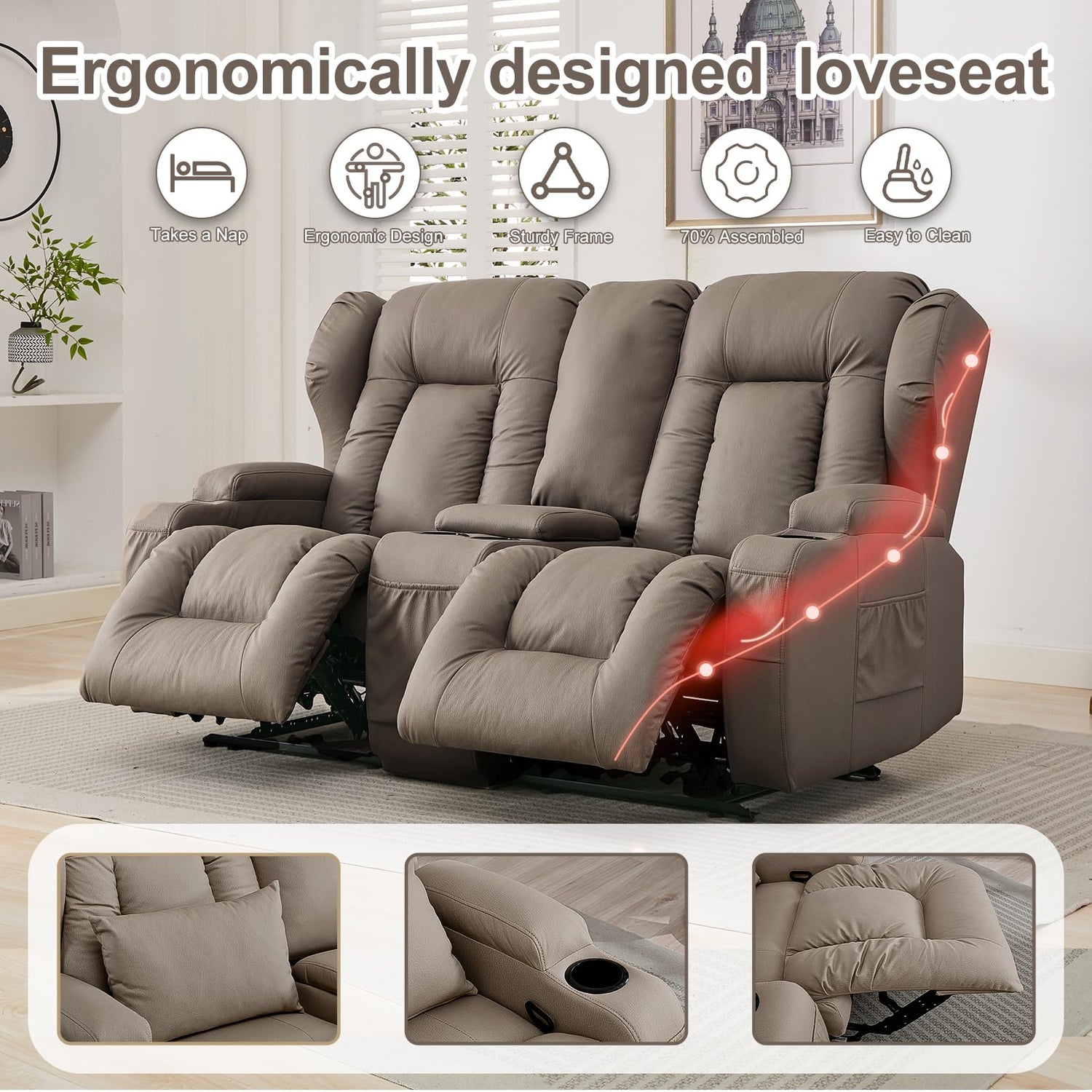 SAMERY 65.5" RV Loveseat Recliner Double Recliner RV Sofa & Console | Wall Hugger Loveseat Reclining RV | RV Theater Seats | RV Couch | RV Home Theater Seating Furniture (Fabric Khaki)
