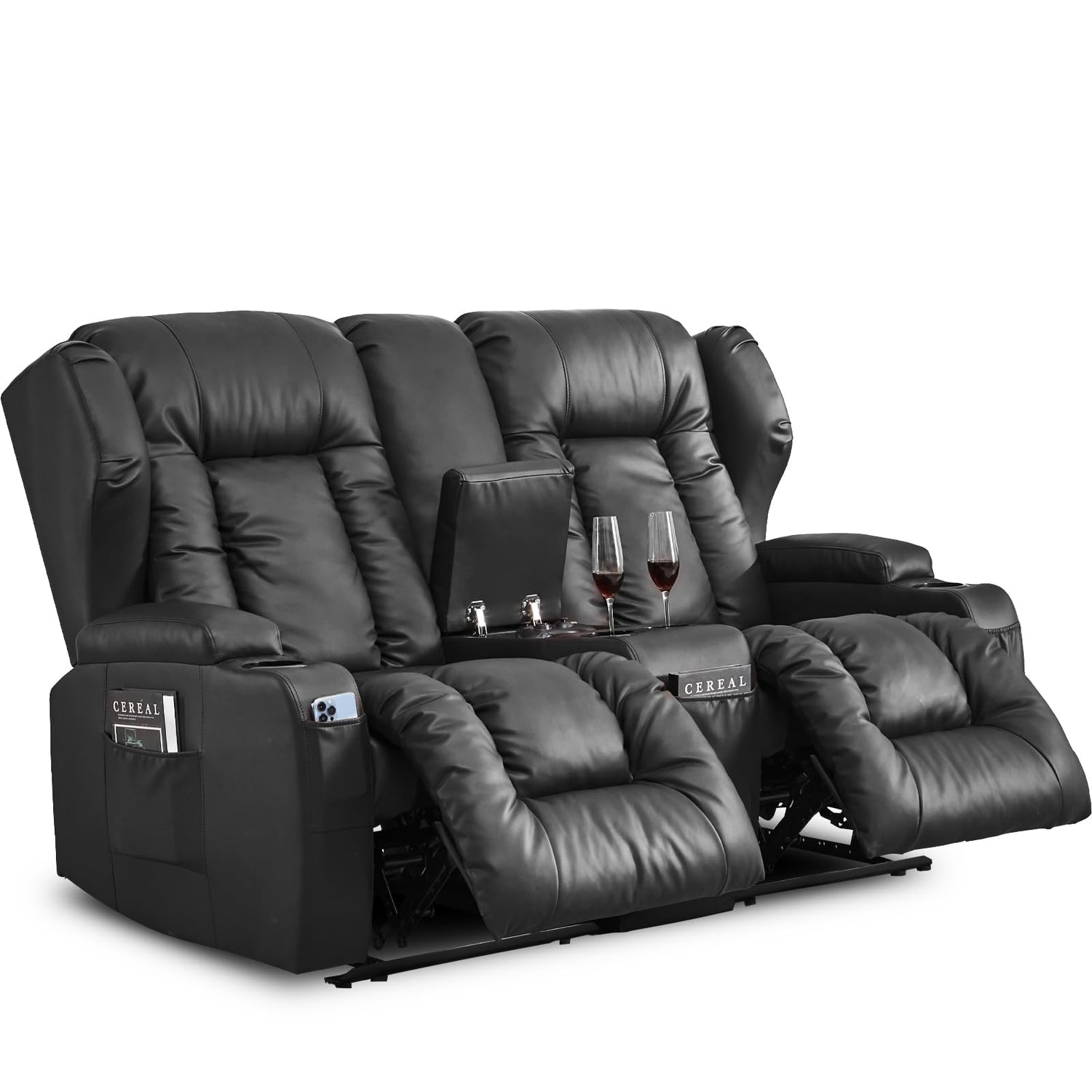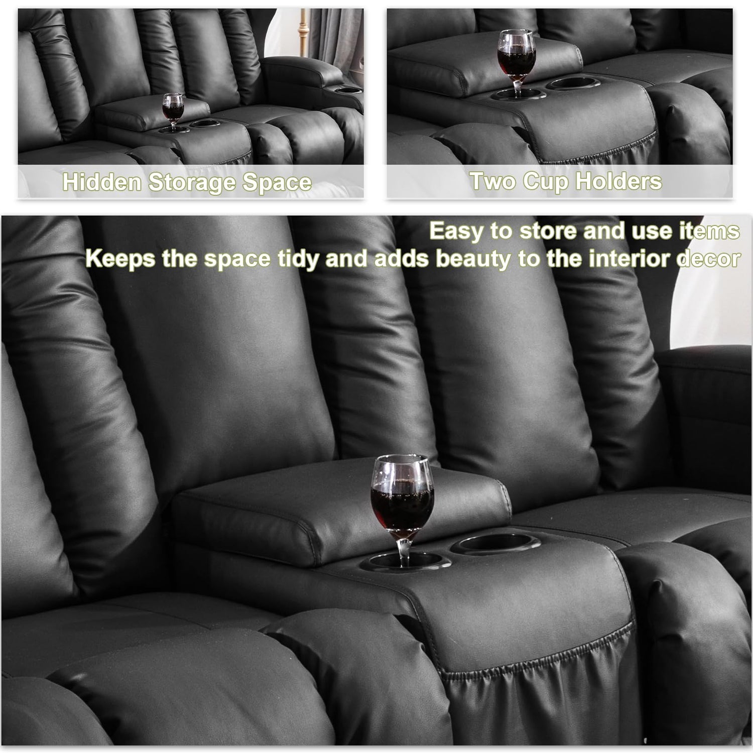 - Long-term Use: Built with a solid wood and steel frame, each seat supports up to 350 lbs. Upholstered in high-quality, easy-to-clean faux leather, it’s designed for long-term use. Spacious and perfect for movie nights with family and friends