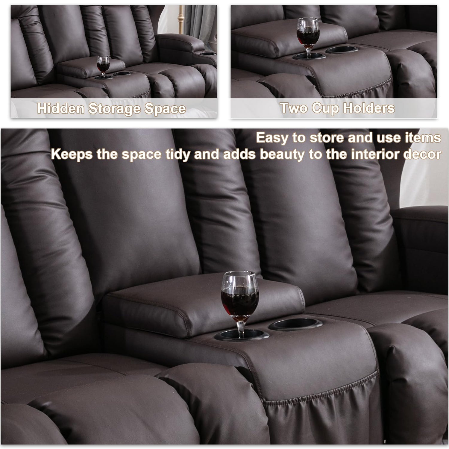 - Long-term Use: Built with a solid wood and steel frame, each seat supports up to 350 lbs. Upholstered in high-quality, easy-to-clean faux leather, it’s designed for long-term use. Spacious and perfect for movie nights with family and friends