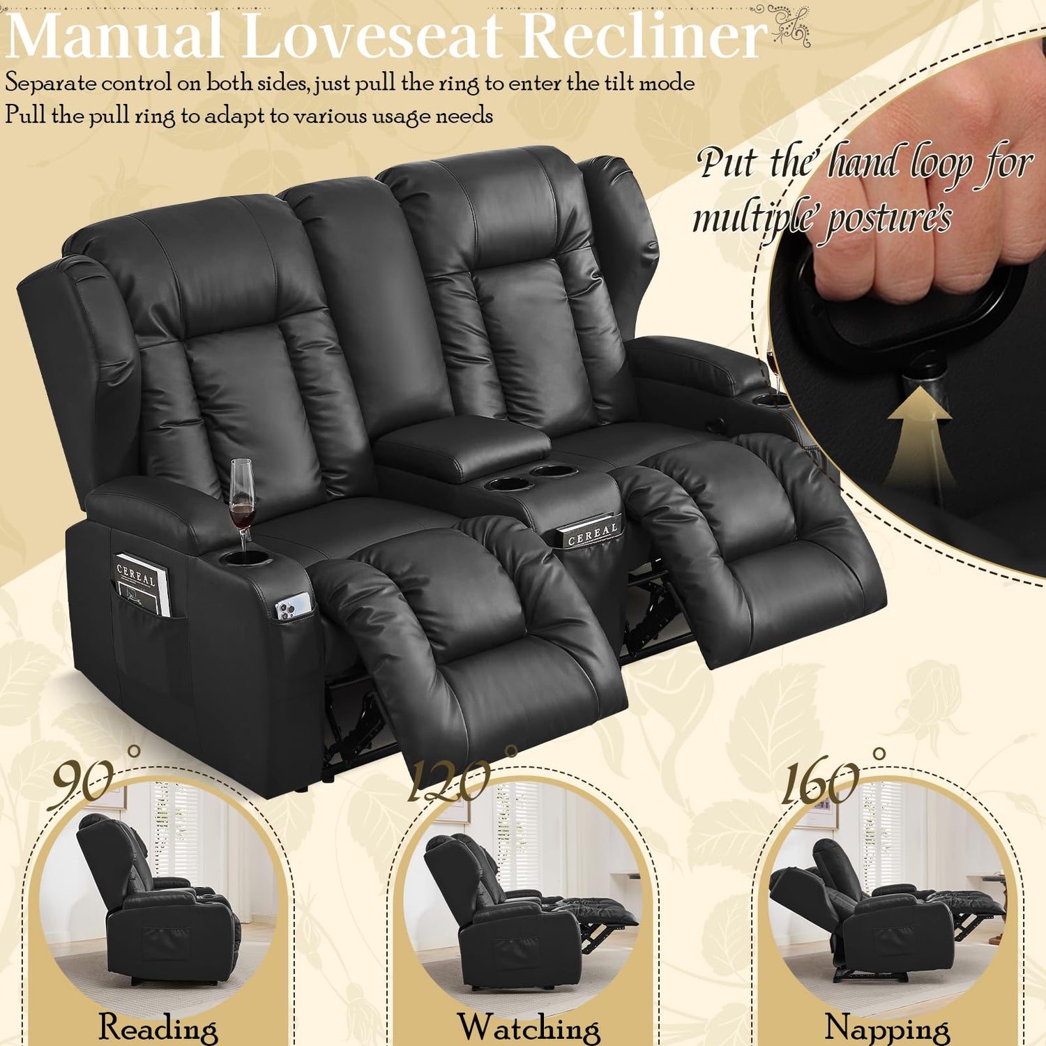 - Manual Loveseat Recliner: Seamlessly adjust your seating with a simple pull of the side handle. The footrest lifts smoothly, letting you recline into your ideal position. To reset, just lean forward and press the footrest down with your feet. Unlike electric models, this manual recliner is always ready, more durable, and never at risk of power failure—offering long-term reliability and peace of mind
