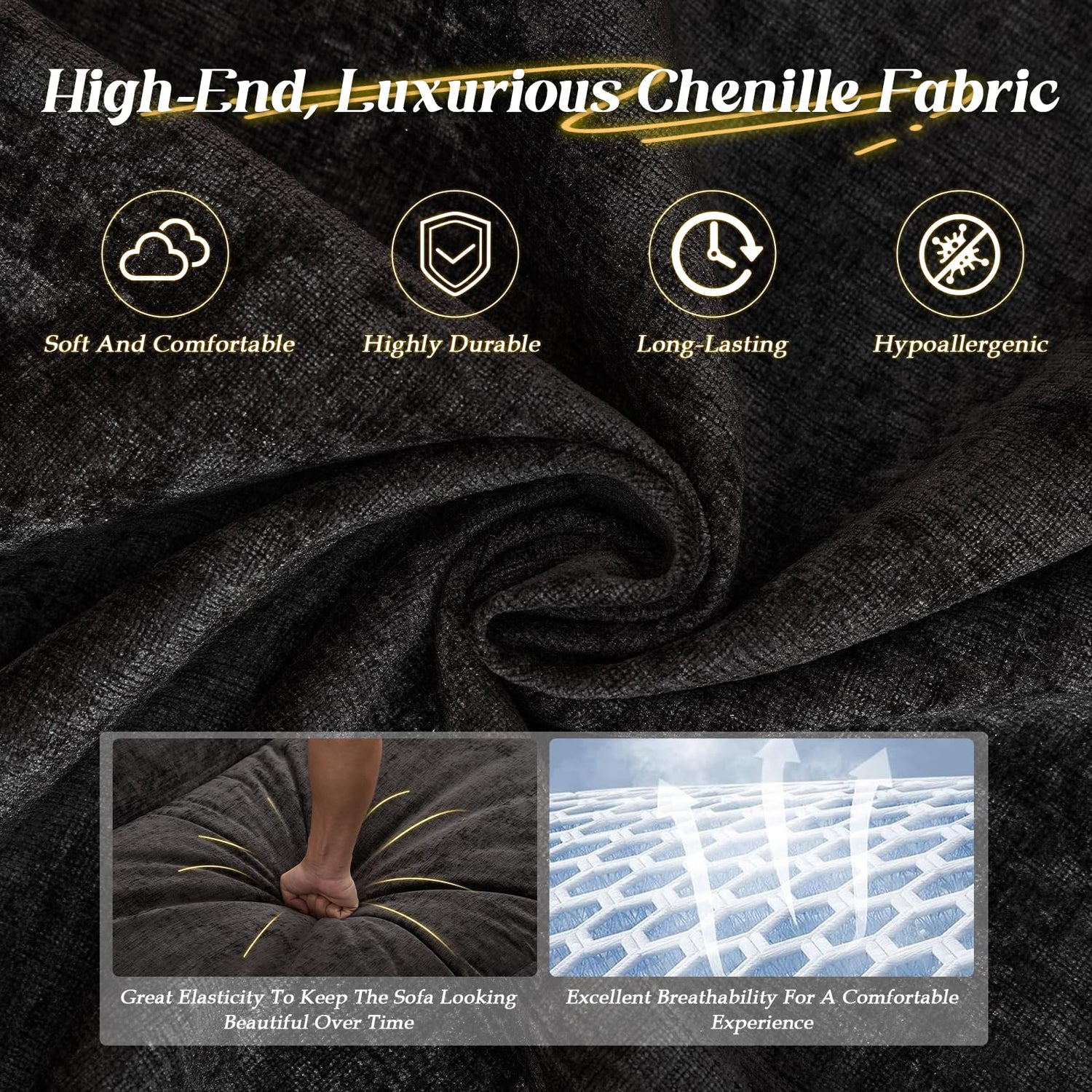 - Ergonomic Comfy Couch: With 4.7" legs, a deep 25.2" seat, and 22.9" seat height. The breathable chenille fabric, thick cushions, and soft backrests adapt to your body, perfect for napping or lounging