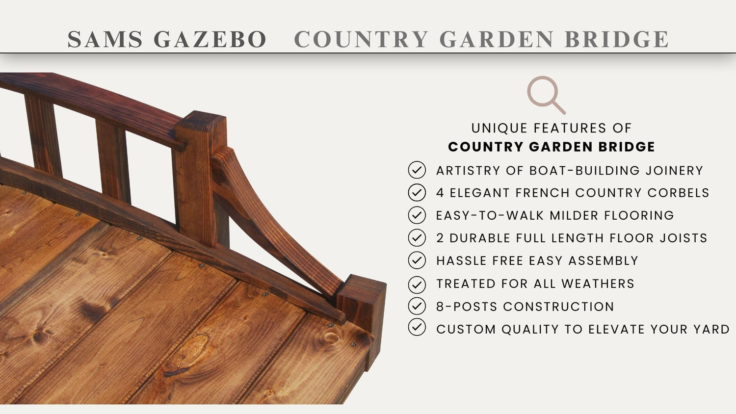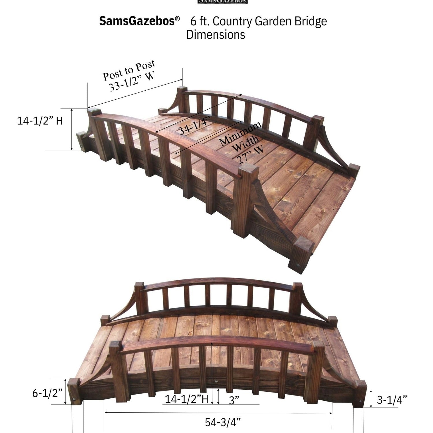 SamsGazebos Country Wood Garden Bridge, 6', Brown