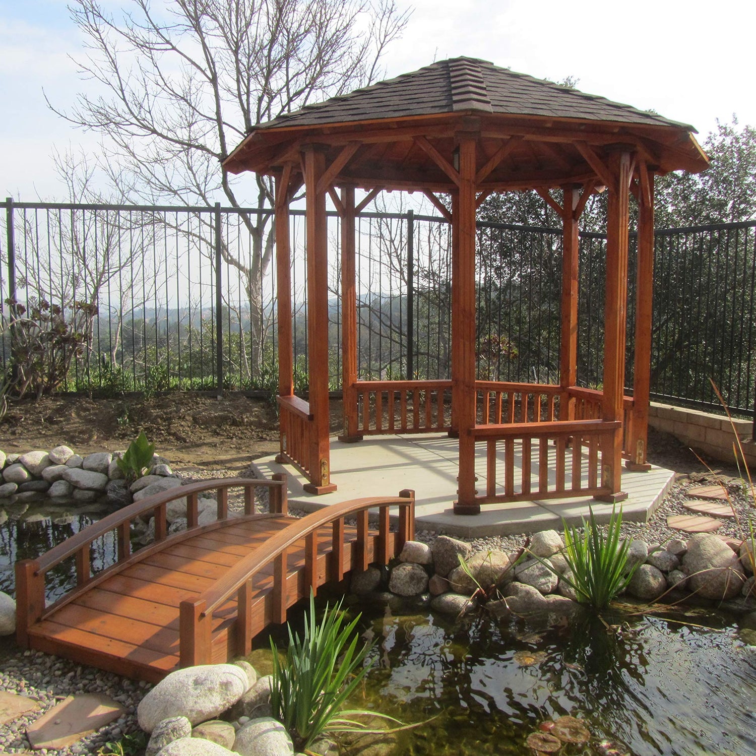 - Gracefully arched Japanese garden bridges to highlight your rock garden or pond
