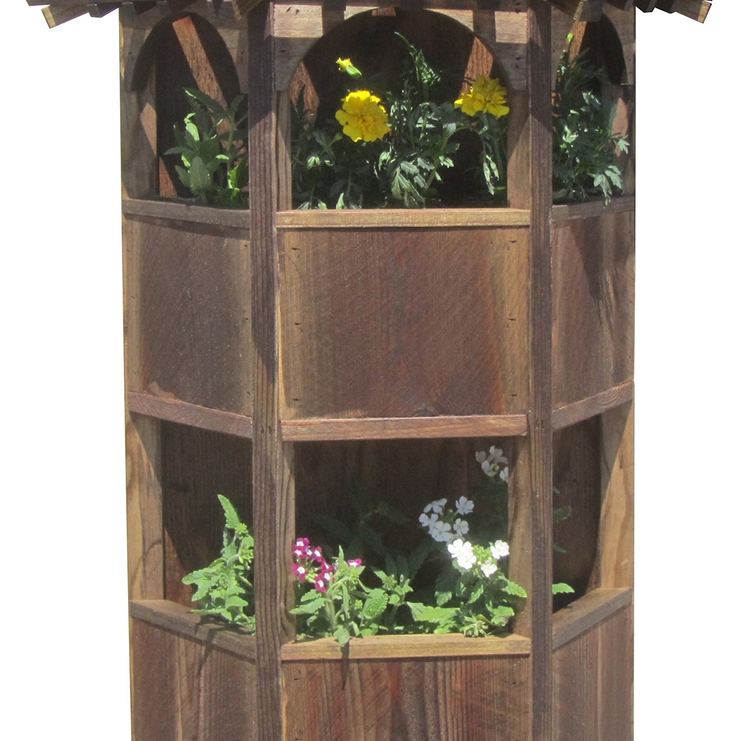 Details: Our wall mount gazebo planters with roof details will enhance any yard or patio. Made of Douglas Fir and treated with semi-transparent brown wood preservative and ready to plant and hang. The bottom of the planters are half hexagon. The both planters are 6 Inch deep. Free-standing.