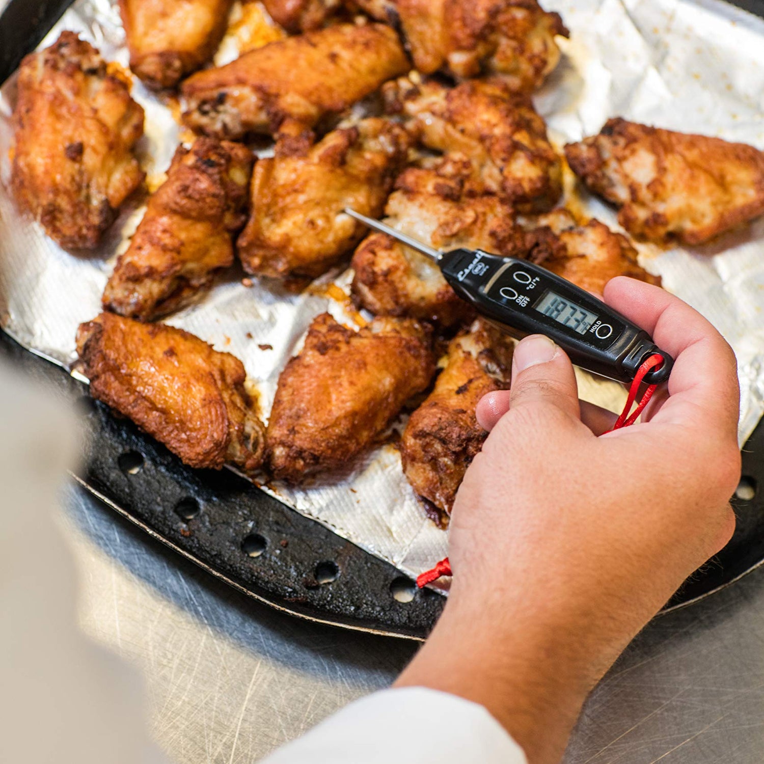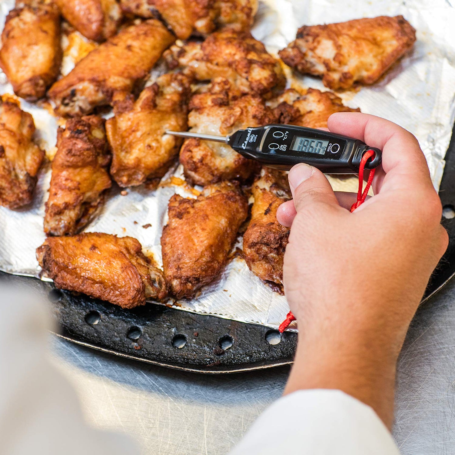 - Display Hold – Allows users to hold readings until thermometer is removed from food