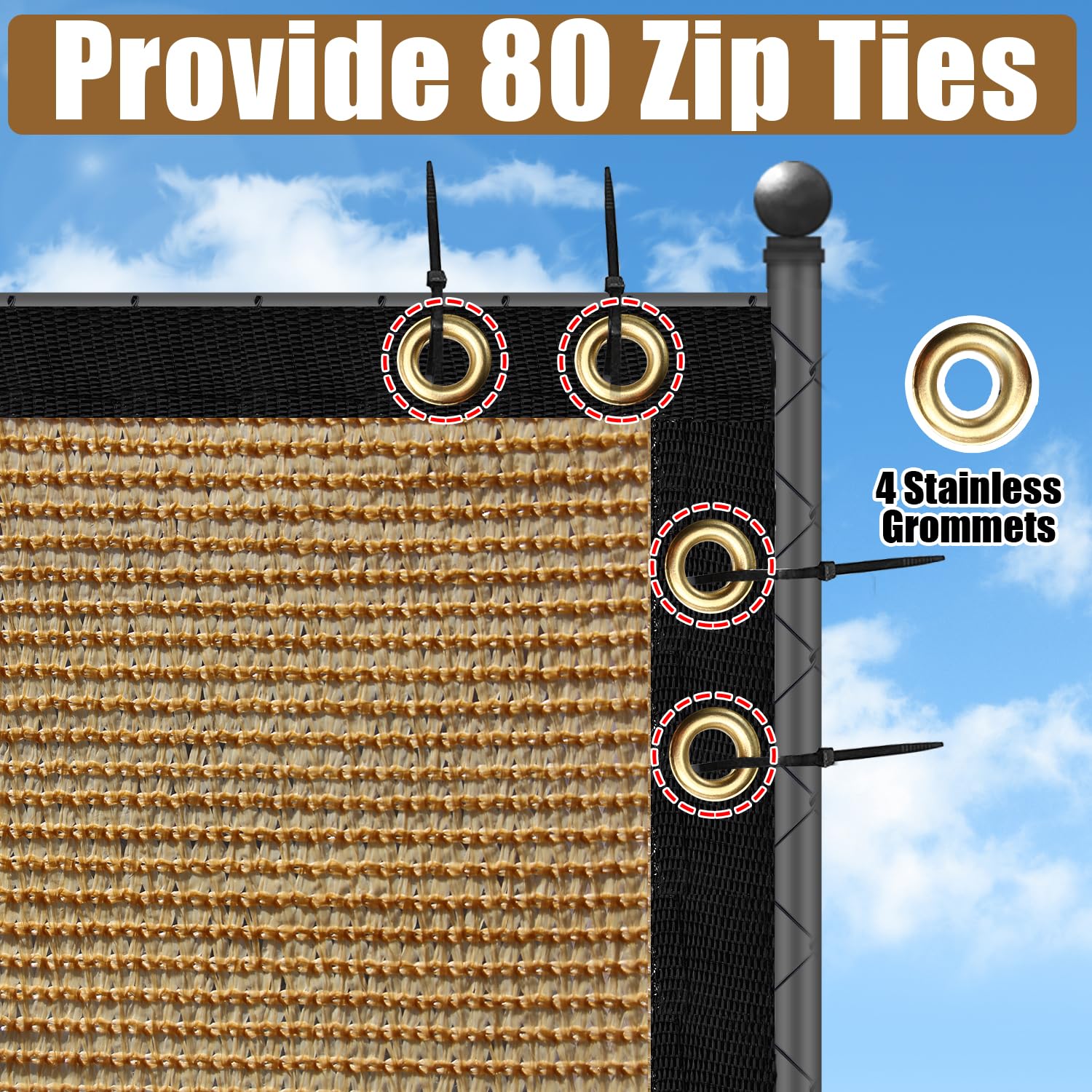 - Perfect Fit & Easy Installation: Our Privacy Screen Fence measures precisely 4' x 50', making it a perfect fit for fences 4 feet or slightly taller. It can be easily installed on chain link fences, existing cyclone wire fences, wooden retaining walls, welded wire fences, and more. For easy and secure installation, we've included grommets placed vertically every 1 foot and horizontally every 2 feet, with 4 grommets at each corner. We also provide 80 zip ties for added convenience.