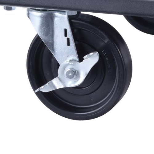 - Four 6" (H) swivel casters have 5" polypropylene wheels and brakes on two of the casters for maneuverability and control