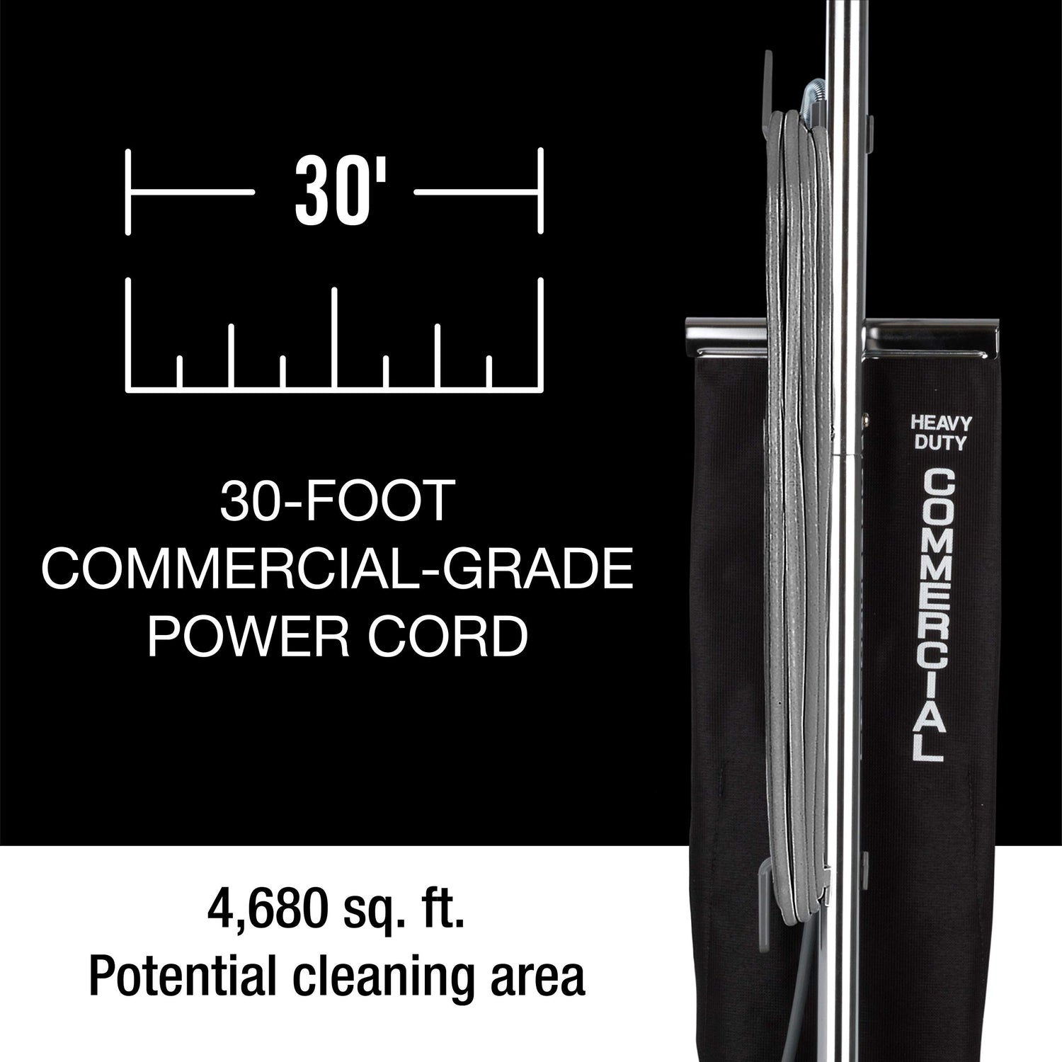 • Commercial-grade power cord is durable and has a 30-foot reach to reduce the need to switch plugs as often and provides a potential cleaning area of 4 680 sq ft