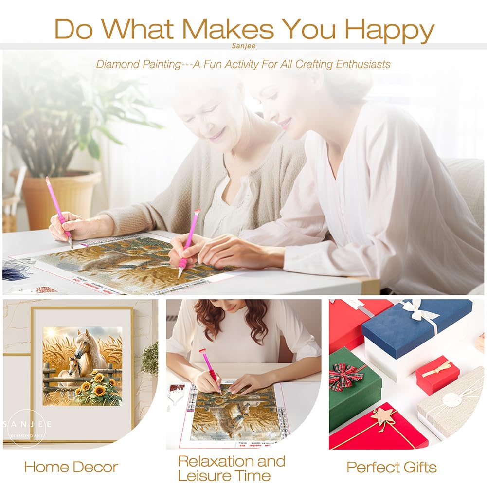 - Horses Diamond Art Painting Kit: Enjoy relaxing diamond art! Complete DIY craft set includes: 12×12-inch HD canvas, diamond pen (3&6-bead tips), wax pad, tray, and 30% extra 5D diamonds. No extra tools required