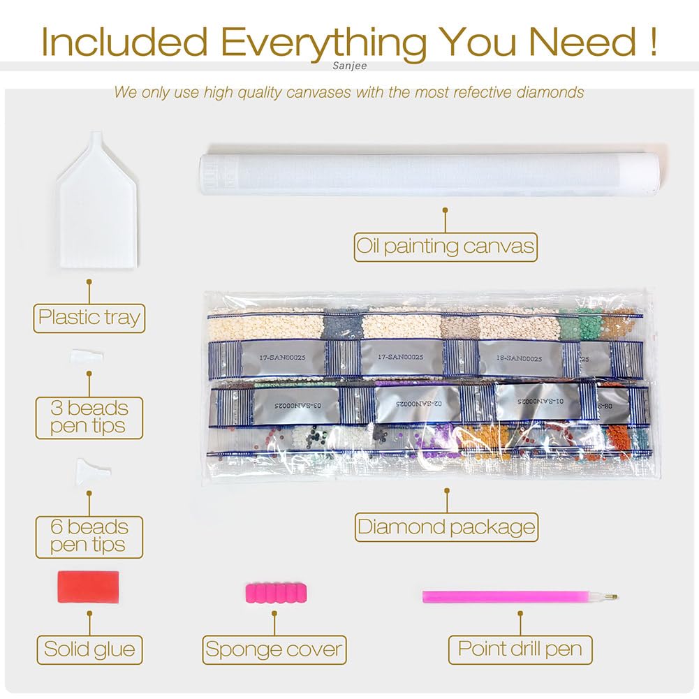 - Sanjee Customer Care: We value every 5D diamond kit and your diamond painting experience. Should any issues arise with your 5D resin diamond kit, We will spare no effort
