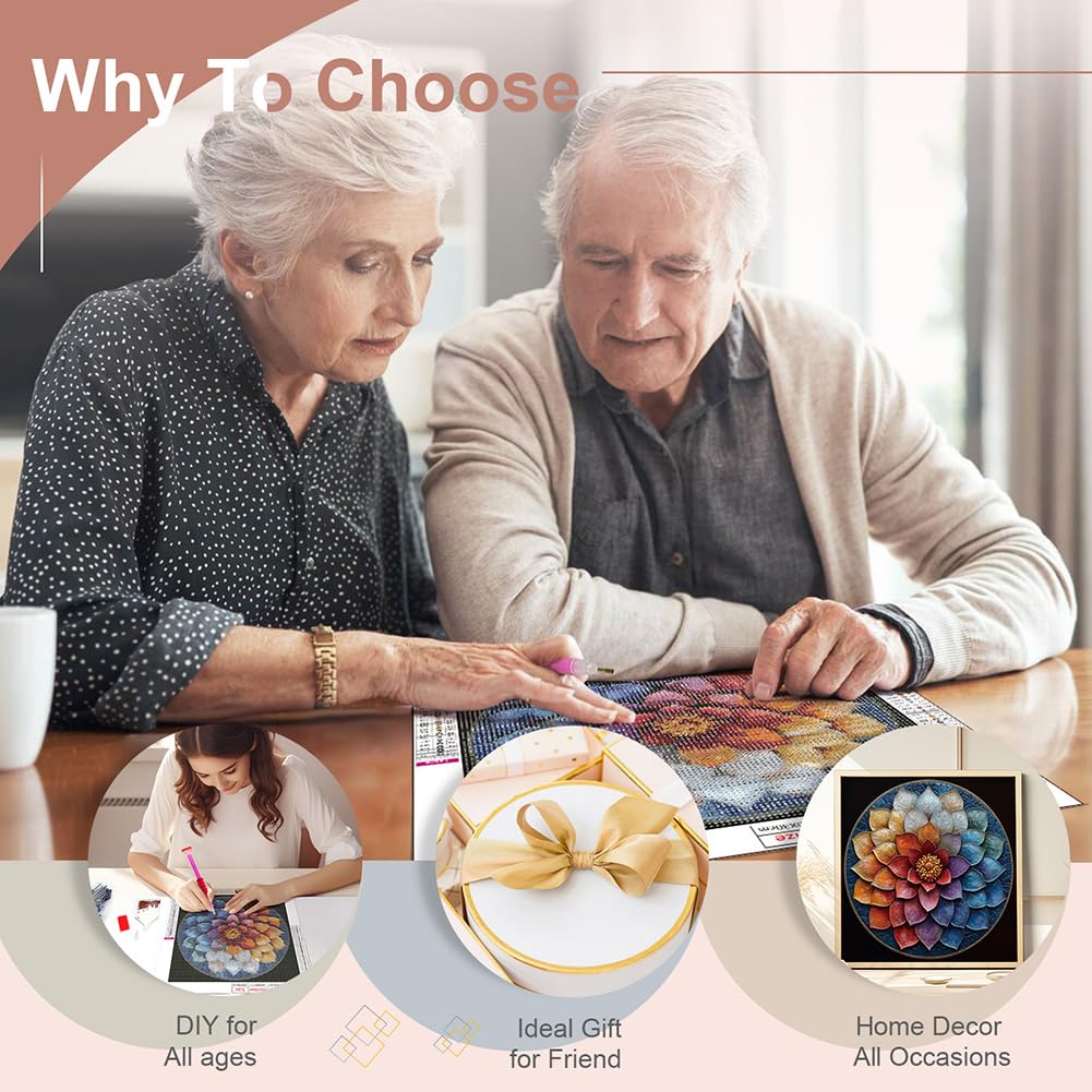 - Mandala Diamond Art Painting Kit: Enjoy relaxing diamond art! Complete DIY craft set includes: 12×12-inch HD canvas, diamond pen (3&6-bead tips), wax pad, tray, and 30% extra 5D diamonds. No extra tools required