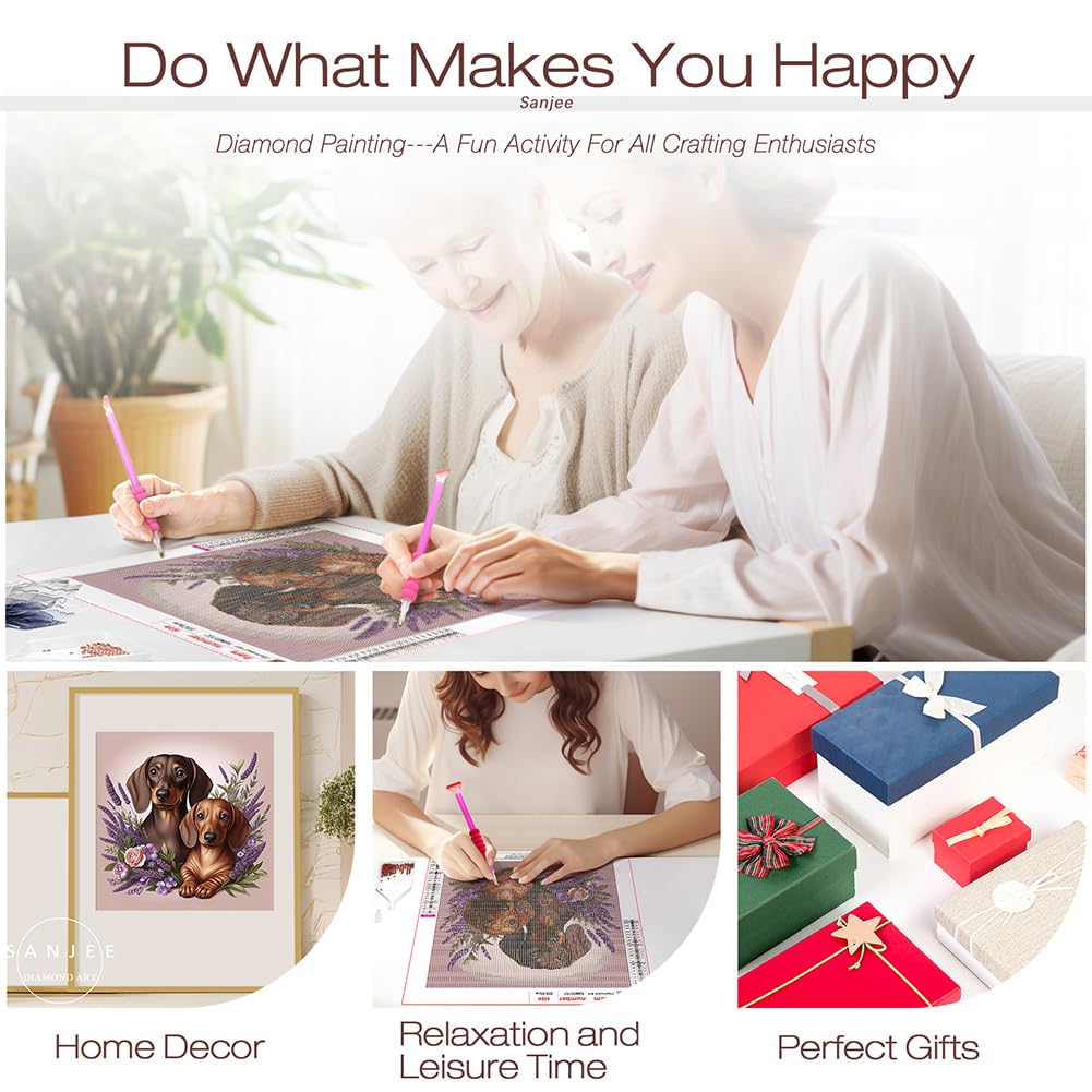 Sanjee Dogs Diamond Art Kits for Adults, Diamond Painting Kits for Beginner, 5D DIY Round Full Drill Gem Art Crafts for Home Wall Decor Gift, 12x12inch