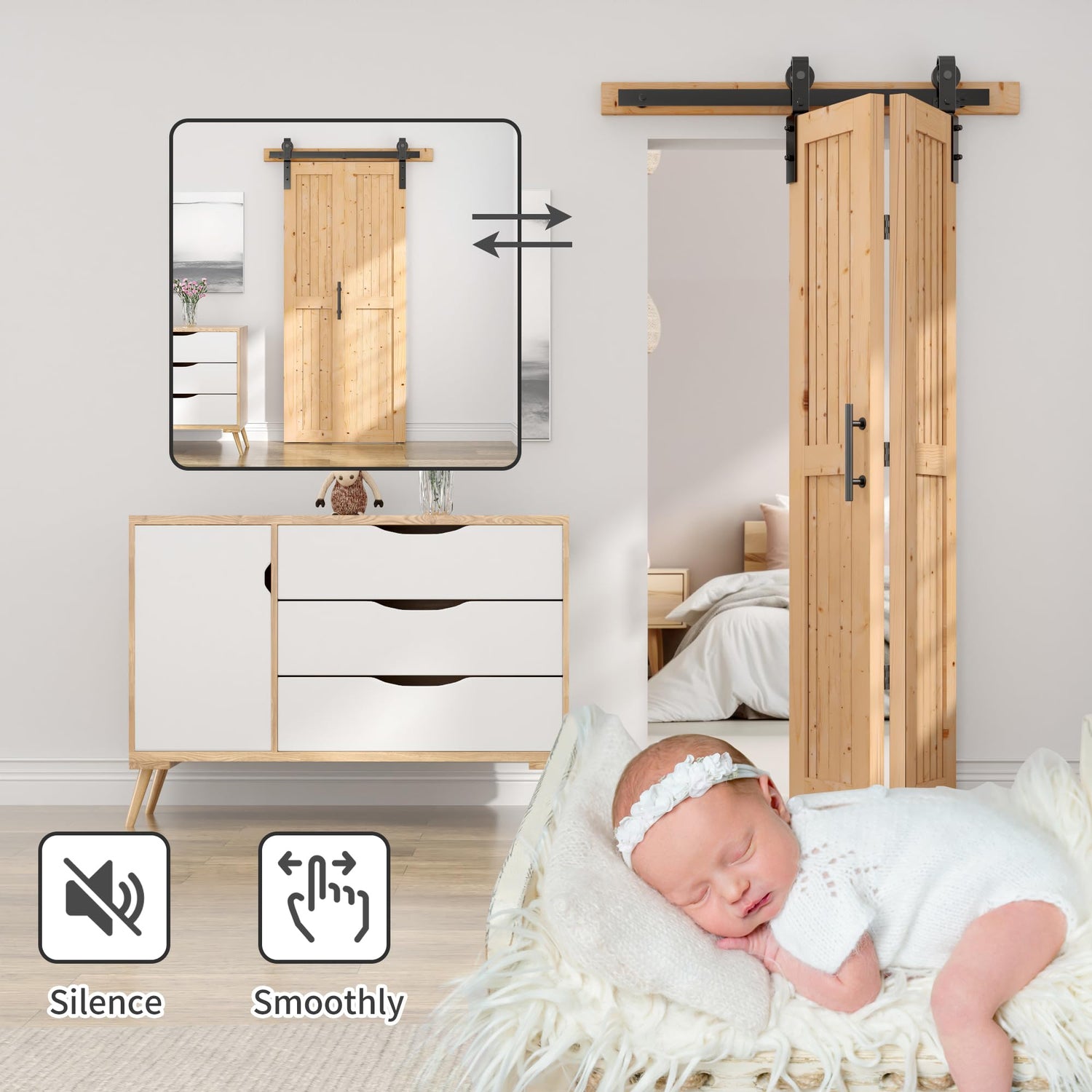 - [Excellent Accessories] The bi-fold door hardware is made of high-quality carbon steel with a rust-resistant black coating for strength and durability. And the matching nylon rollers have been tested 100,000 times, sliding smoothly and smoothly, giving you a quiet space