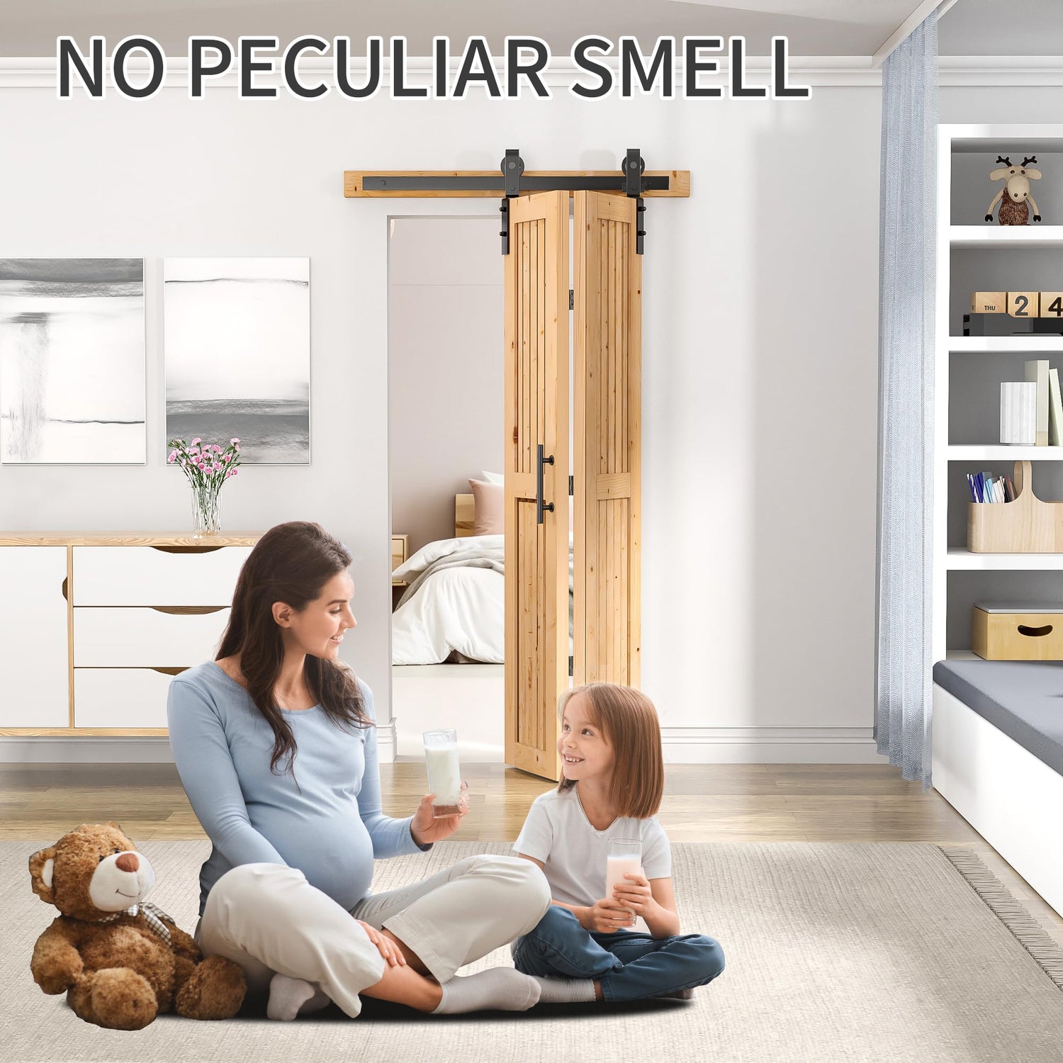 SANKEYTEW 36"x84" Bi fold Barn Door with 40" Bifold Barn Door Hardware Kit for 2 Doors, No-Assembly Solid Spruce Wood Folding Doors, Barn Door Hardware, and Double Sided Handle Pulls Included