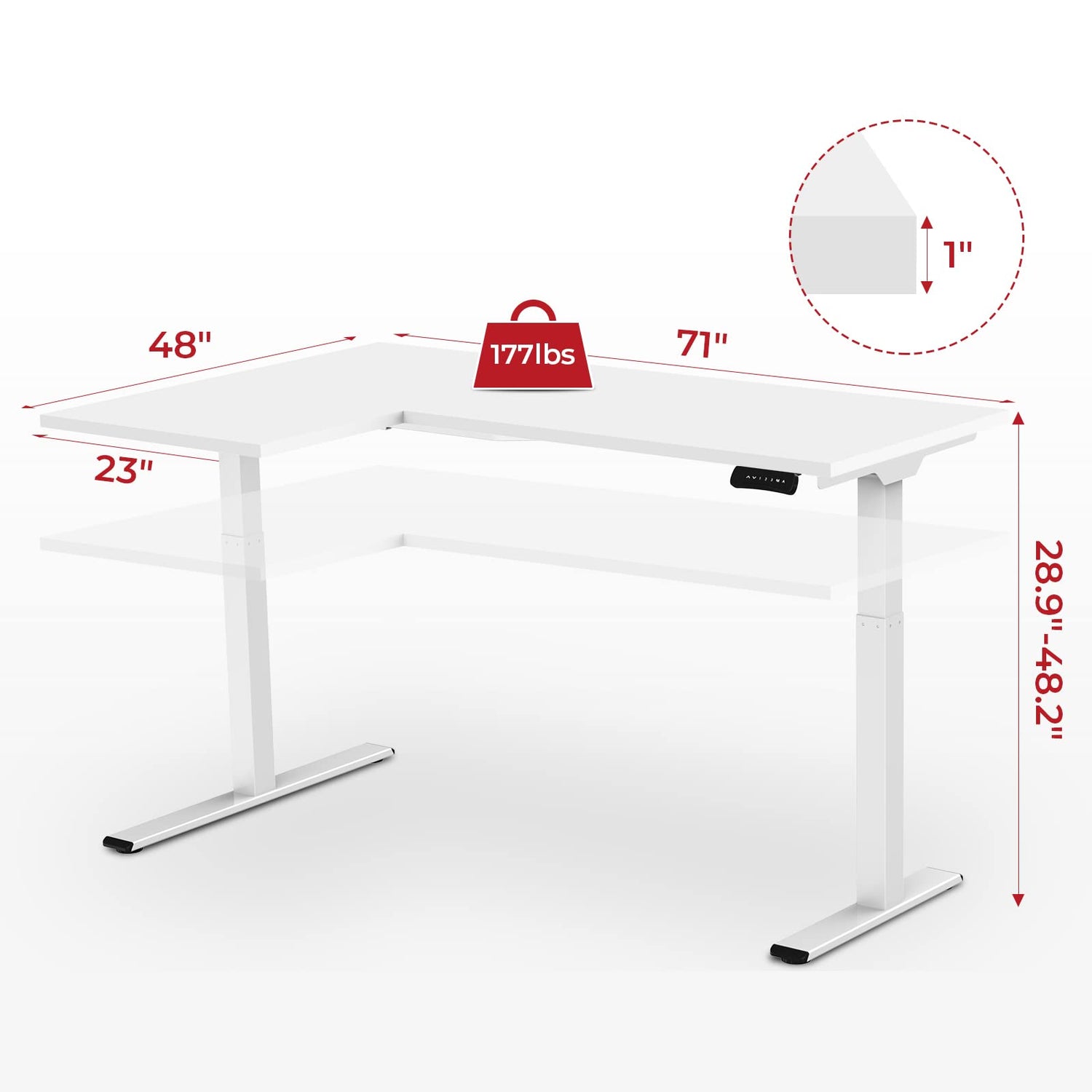 SANODESK 71-Inch Large Dual Motor L-Shaped Electric Height Adjustable Standing Desk - Reversible Panel - White Top/Black Frame - Ideal for Gaming, Home Office or Computer Workstation