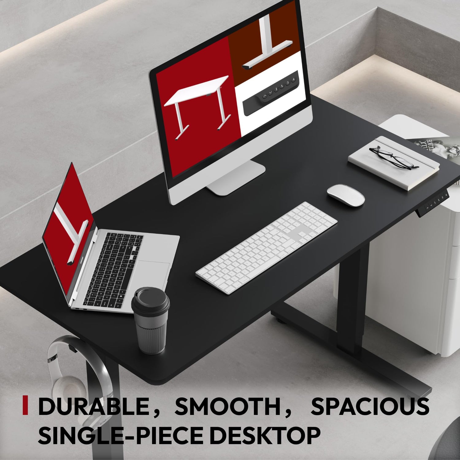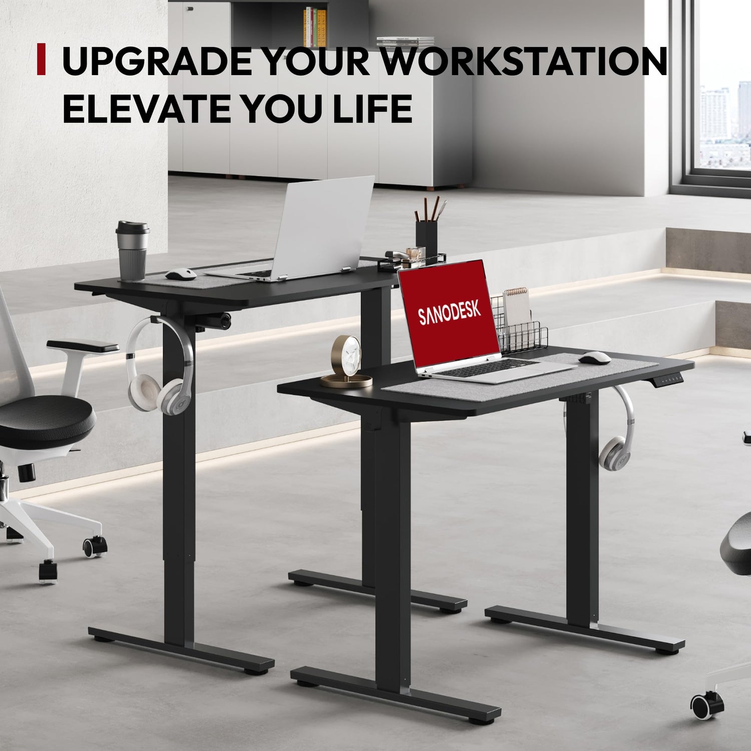 SANODESK Electric Standing Desk 40 x 24 Inches Whole-Piece Desktop Height Adjustable Stand Up Desk w/6-Button Controller Ergonomic Computer Desk for Home Office, Black Frame + Black Tabletop
