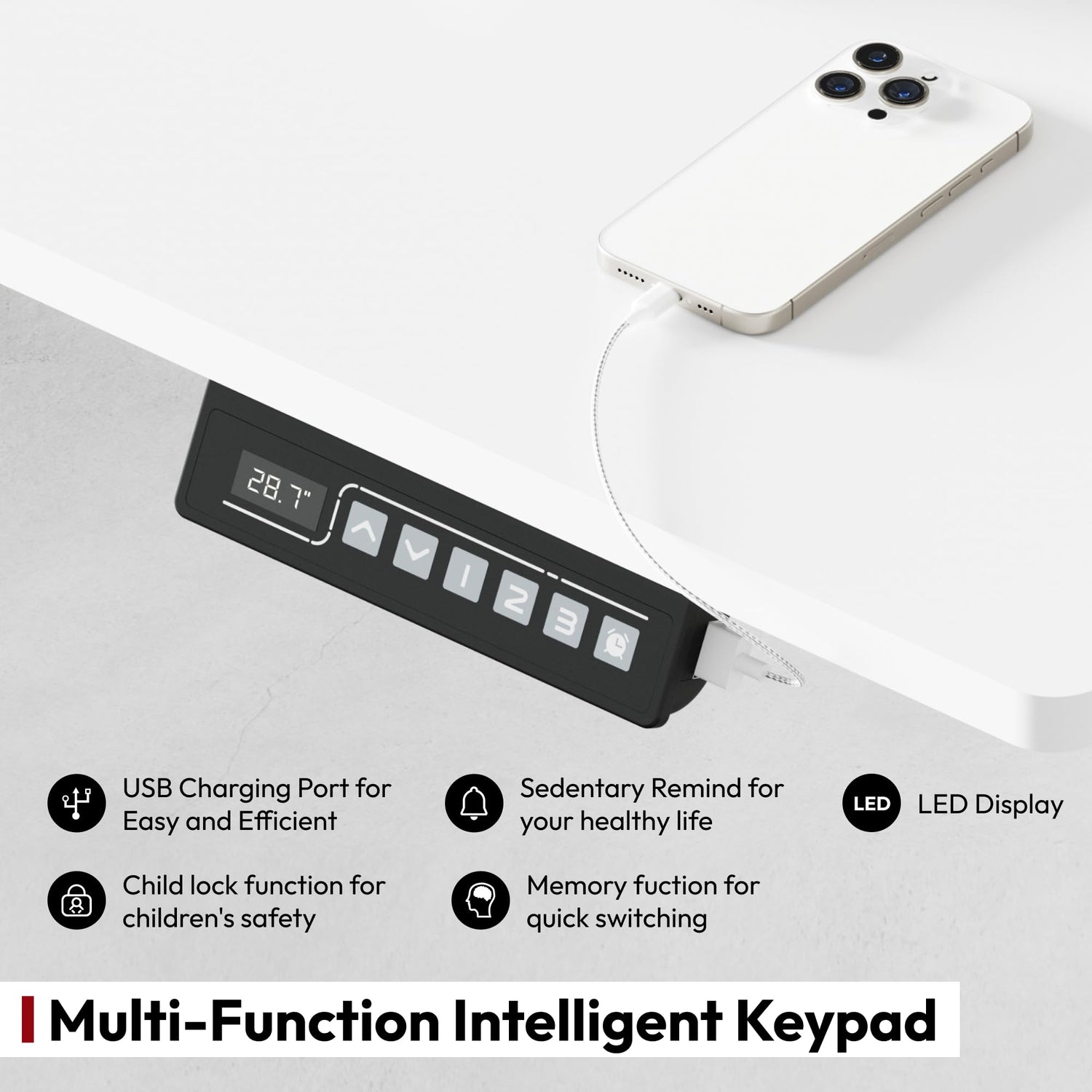 - Electric Height Adjustable: The stand up desk features 3 preset buttons to customize your desired heights from 28.7" to 46.5".With prolonged sitting reminder feature, it offers enhanced intelligence and user-friendliness