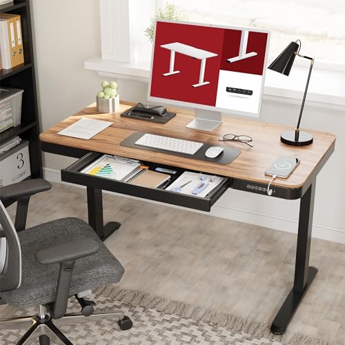 SANODESK Standing Desk with Drawer, Electric Height Adjustable Home Office Desk with Storage & USB Ports, 48 inch Black Walnut Wood Tabletop/Black Frame