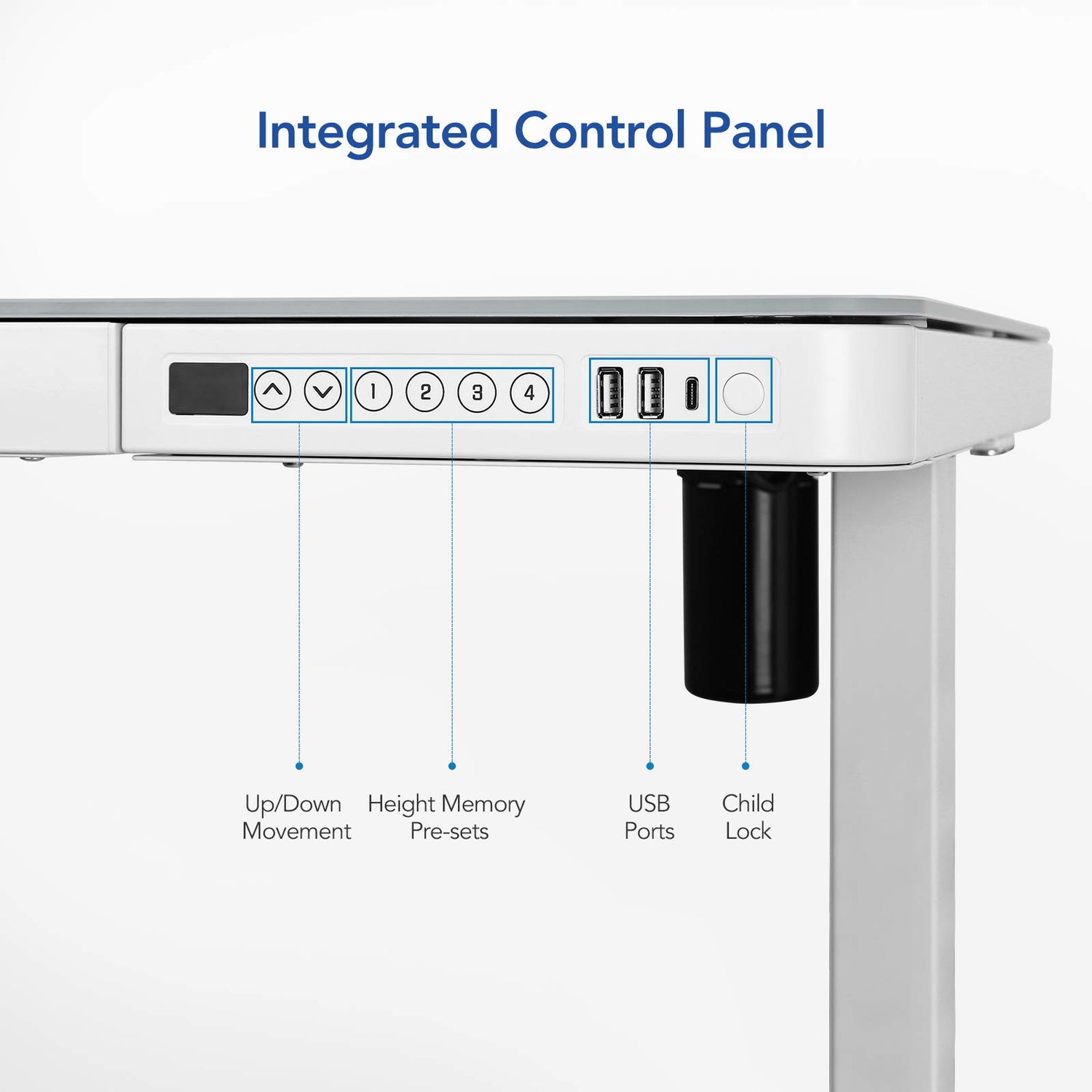 - Embedded Multiple Functions: Easily save multiple with four programmable height presets, a child lock button helps prevent accidental touch. Charge up to three devices with integrated USB ports (Type-C output: 5V2.4A/9V2A/12V1.5A; 2 Type-A output: 3.6-6.5V2.4A/6.5-9V2A/12V1.5A) without mess & hassle. (Note: USB ports may pause charging while adjusting desk height, Laptop charging is not supported).