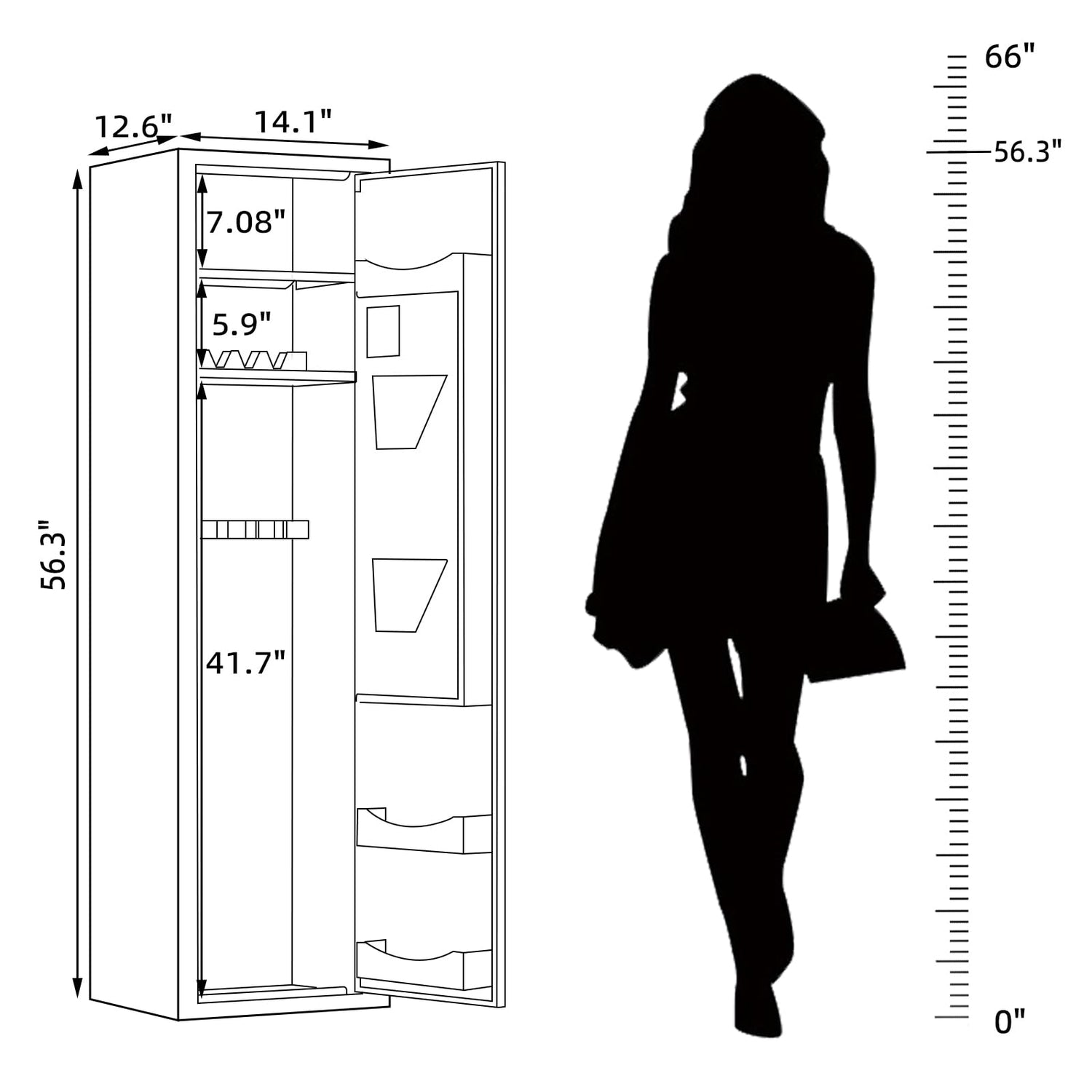 - [ Large Integrated Gun Safe ] This gun safe can hold 6 rifles with scopes at the same time. This Integrated rifle safe you can use directly after you receive it, no assembly required. Let you have a better using experience. External dimensions: 56.3”(H) X 12.6”(D) X 14.1”(W).