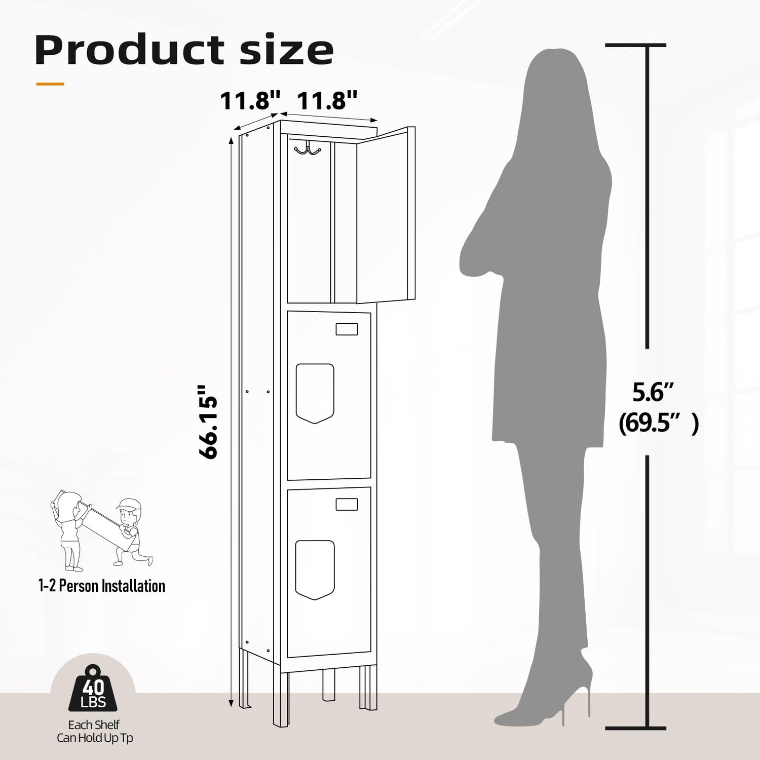 - 【Taller Metal Locker】This metal locker cabinet : 66.15"H x 11.8"W x 11.8"D. made from high-quality cold-rolled steel with a rust-resistant powder coating for durability.