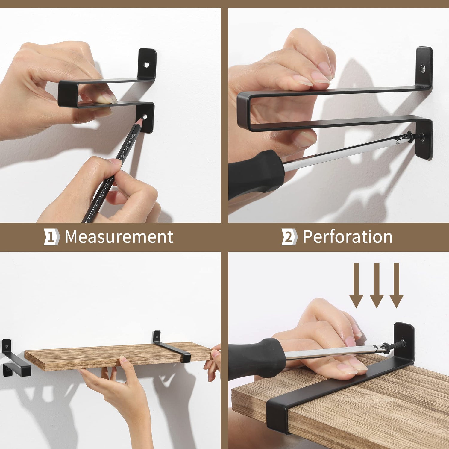 - 【Package Included】Package includes 3 durable and lightweight paulownia boards, 6 U metal brackets, 12 plastic anchors, 12 screws and 1 installation manual.