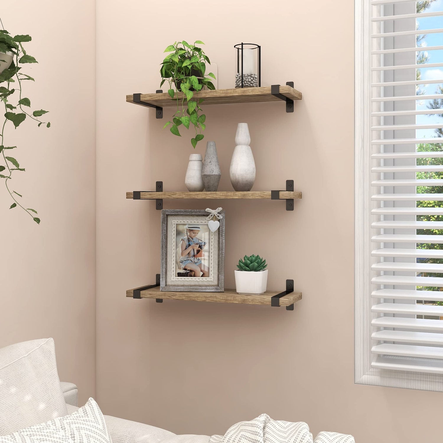 - 【Quality Guarantee】The floating shelves are wrapped with foam that keep them safe and secure from damage. If you don't love these wood floating shelves, please contact us for a full refund or replacement.