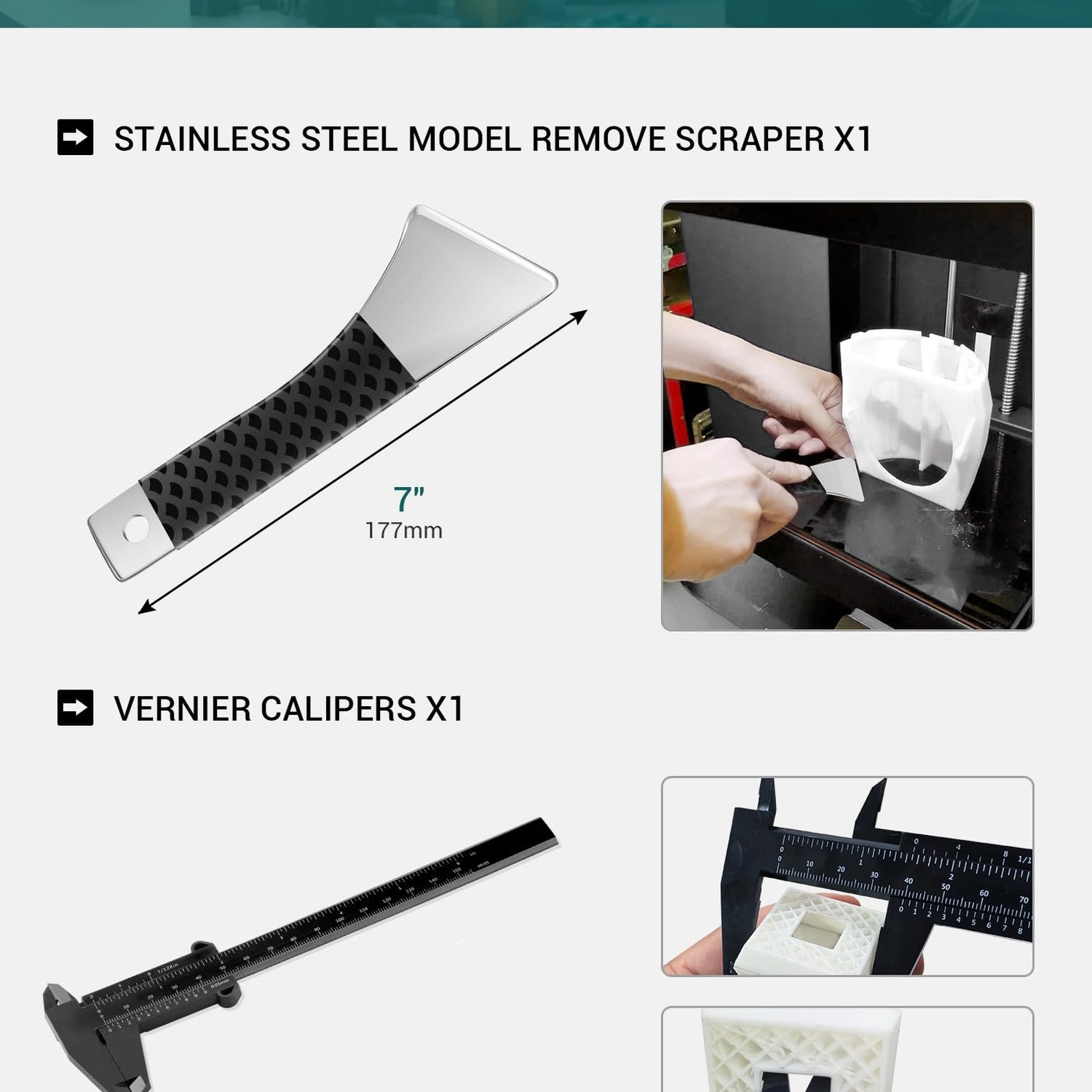 - 【30-Packs 3D Printer Tool Set】: SARDVISA 30-Packs 3D Print Tools Kit Includes: Stainless Steel Model Remove Scraper X1, Steel Grinding File X3, Burnishing Stick X2, 7PCS Carving Knife Set X1, 7PCS Nozzle Cleaning Needle Set X1, Nozzle Cleaning Brush X3, Vernier Calipers X1, 20CM Stainless Steel Ruler X1, Filament Pliers X1, Tweezer X1, Glue Stick X1, Cutting Plate X1, Zipper Storage Bag X1. One Purchase for Multi-Needs.