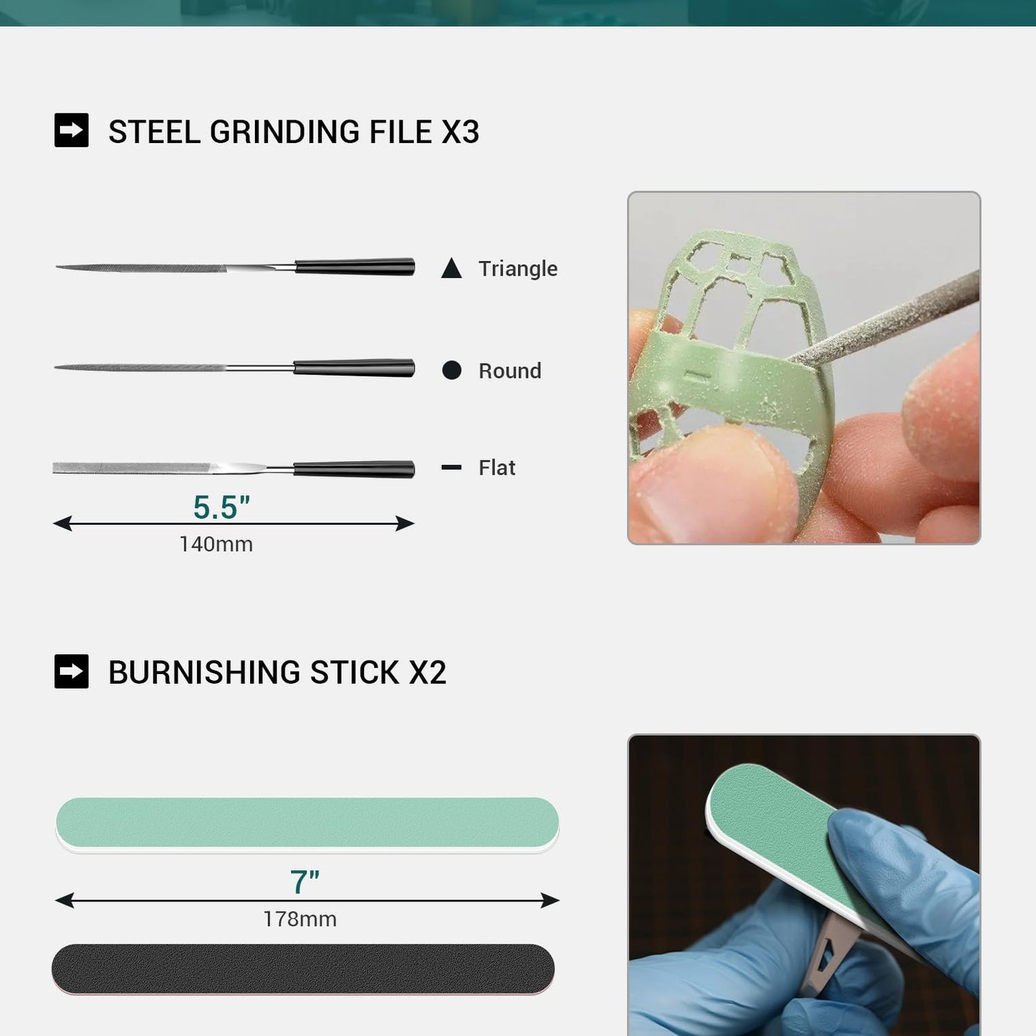 - 【Easily Create Your Model】: Smooth edges of the 3d printing spatula can easily remove the model without damaging the printer work surface. 7PCS Carving Knife Kit and Tweezer help you remove burrs of model. Grinding Files help you finish the final polishing working.