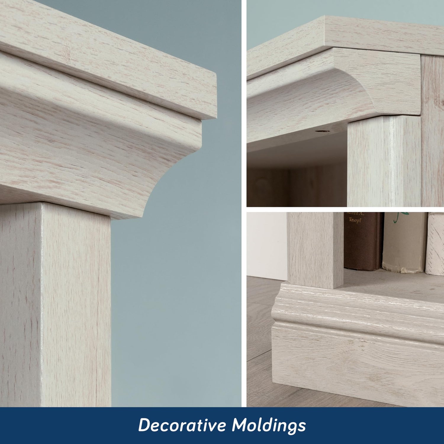 Details: There is no such thing as too much storage space. Add a little extra storage to your home with this beautiful 5-shelf bookcase from the Sauder Select collection. This tall bookcase features five spacious shelves that offer you ample amount of room for you to store and display anything from your assortment of cook books, work binders, and bins of office supplies to knick-knacks, decorative plants, and photos of your friends and family. Three of the shelves are adjustable so you can modify and move them to the specific height and placement to fit all your needs. It has room for it all! This versatile bookcase adds charm and simple style that is sure to stand out in any room of your home – the living room, down the hallway, in the office, or even the bedroom! Finished in Chalked Chestnut®, this handsome bookcase is the solution to all your storage woes