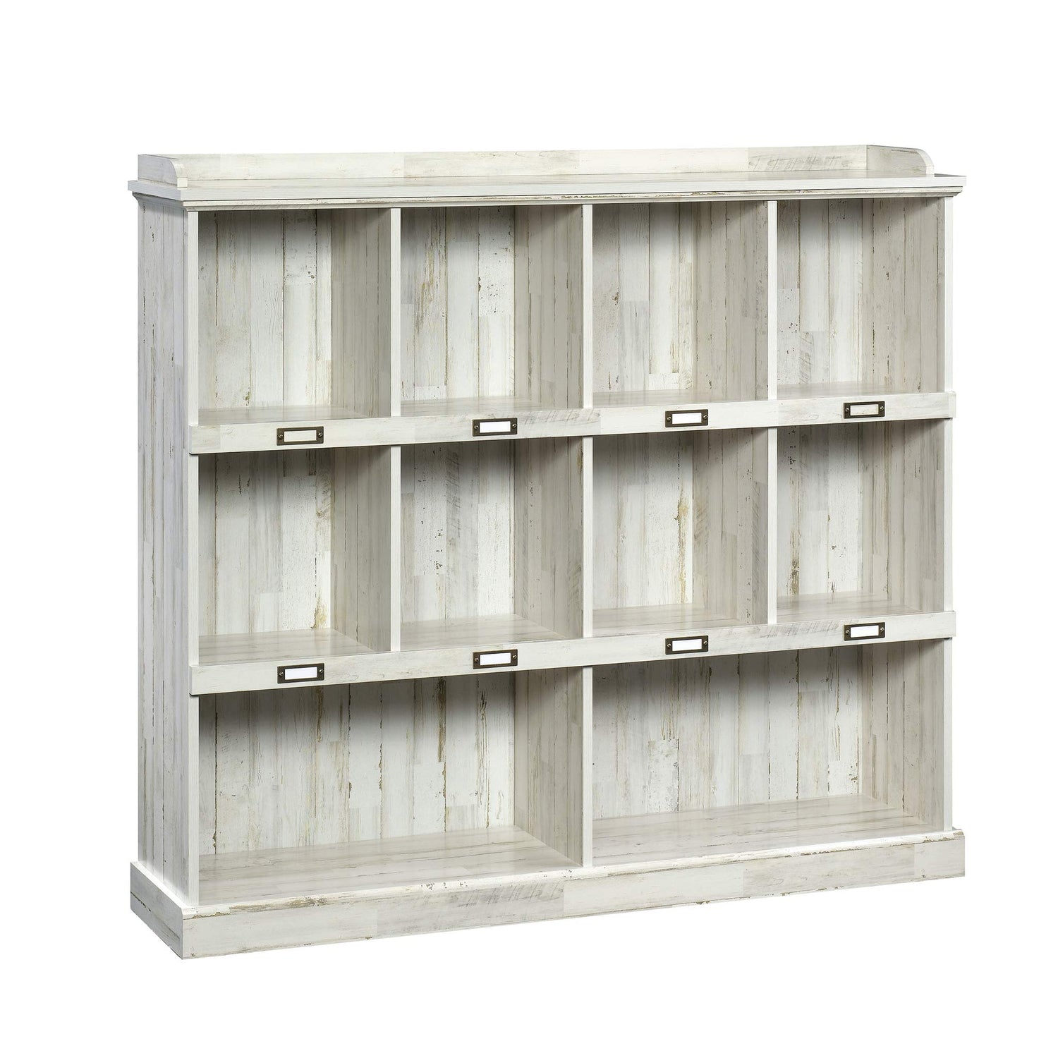Details: Stack, store and display. Create a versatile storage and display area in your home while adding beautiful style and design with this bookcase from the Barrister Lane® collection. This good-looking bookshelf features ten spacious cubbyholes that are ideal for storing items like stacks of books, school binders, baskets and organizing bins. These cubbyholes also make a great spot to display home décor items like decorative plants, collectables and framed photos of the family. This cubby bookcase accommodates ID label tags so you can keep track of all your stuff. The spacious top shelf with a gallery display is perfect for displaying other household items like sweet smelling potpourri and your array of knick-knacks. Style this storage bookcase how you like – its reversible back panel features both Cobblestone and a White Plank® finish. Finished in White Plank®, this one-of-a-kind cubbyhole bookcase will have your home feeling organized and clutter-free in no time.