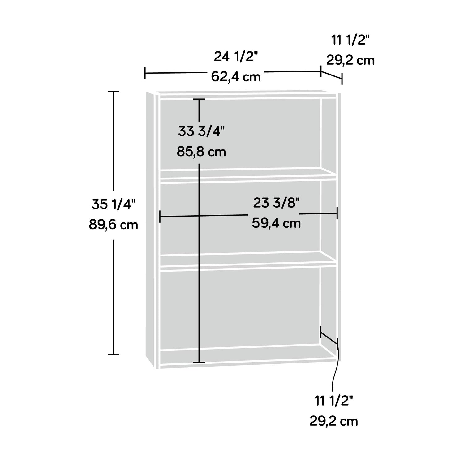 - Assembled dimensions: L: 24.567" x W: 11.496" x H: 35.276