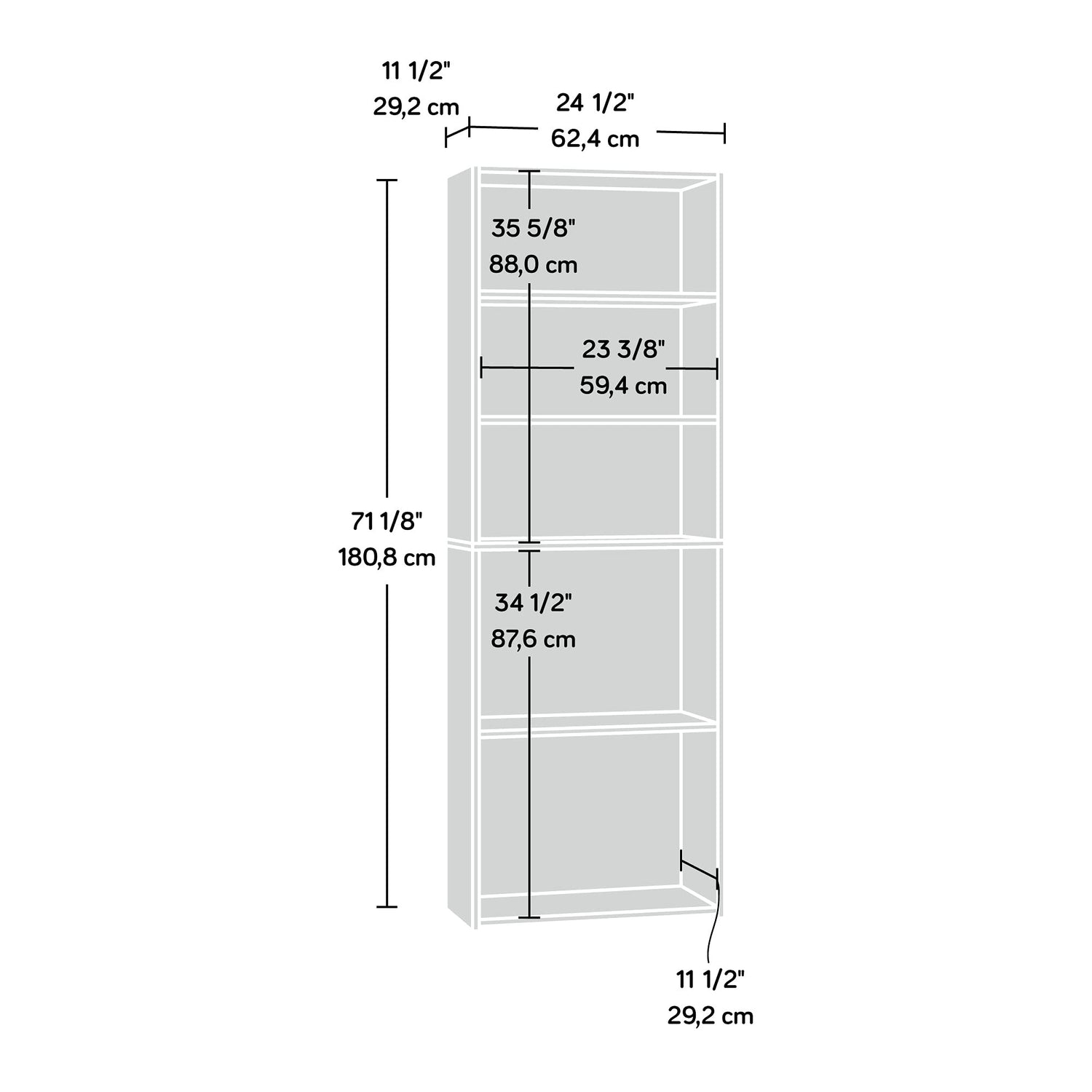 - Assembled dimensions: L: 24.57" x W: 11.50" x H: 71.18"