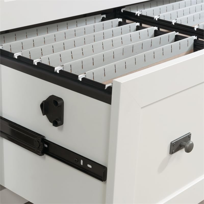 Details: Sauder Cottage Road Engineered Wood Lateral File Cabinet in White Finish Sauder Archivador lateral de madera con acabado blanco