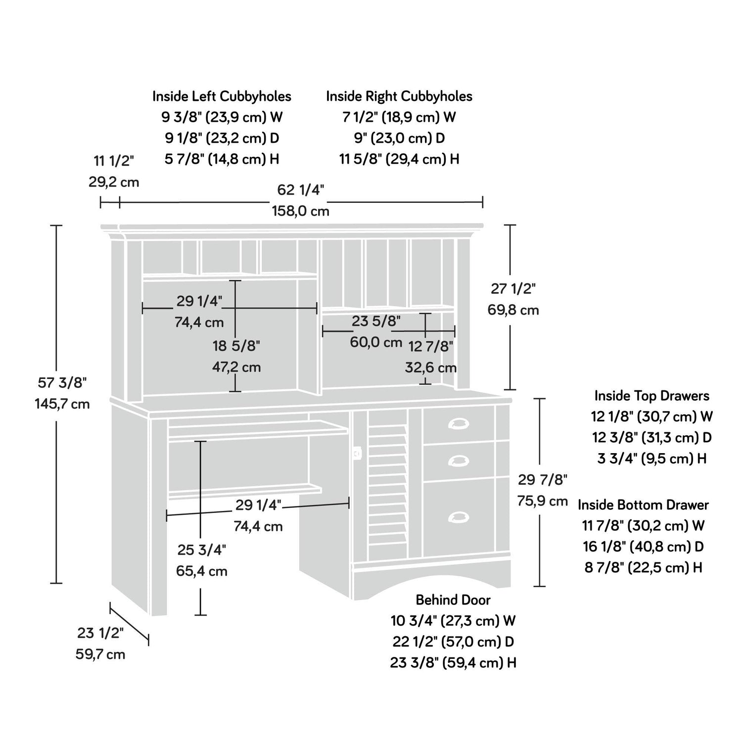 - Hutch has cubbyhole storage and vertical storage compartments for additional storage and display