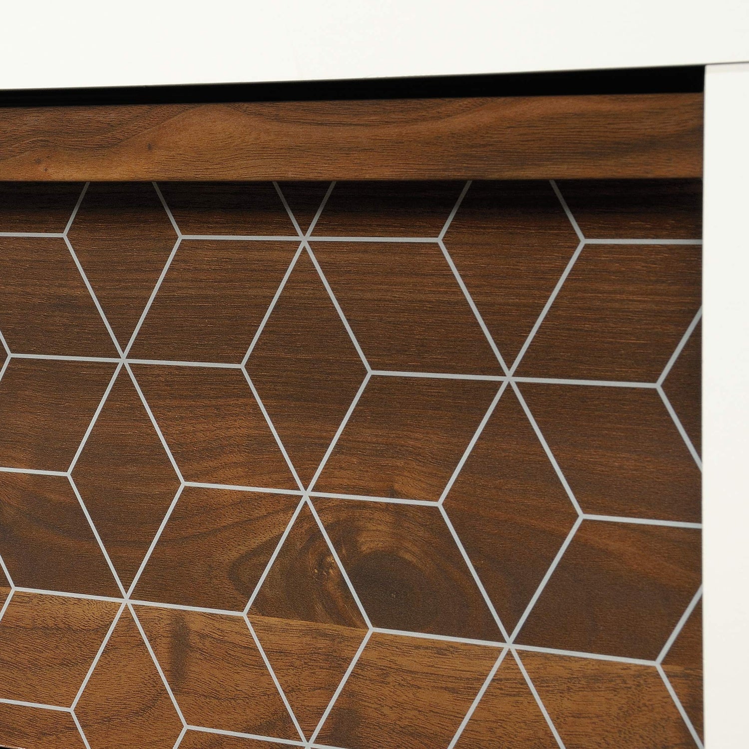 Details: Organization and style all in one. Give your bedroom a touch of modern-inspired style with this dresser from the Harvey Park collection. This beautiful bedroom dresser features six spacious drawers that open and close on smooth metal runners. These six drawers provide you with ample space to store a variety of different items like stacks of slacks and your favorite blouses to cozy sweaters and your favorite pajama pants. There is room for all your stuff! This 6-drawer dresser also offers a large top surface that provides you with even more space to store bedroom essentials and home décor items like your makeup bag, decorative plants, bottles of cologne, and photos of your family and friends. Each of the six drawer fronts feature a geometric line pattern that adds a beautiful modern touch that is sure to stand out. Finished in Soft White with Grand Walnut accents, this eye-catching dresser is just what your bedroom needs.