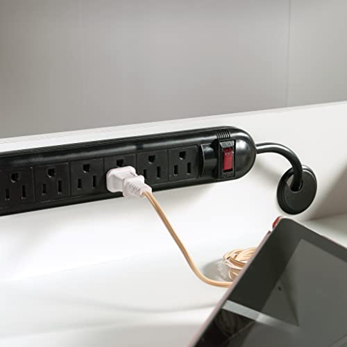- Center shelf also features power strip with six outlets for convenient electrical access